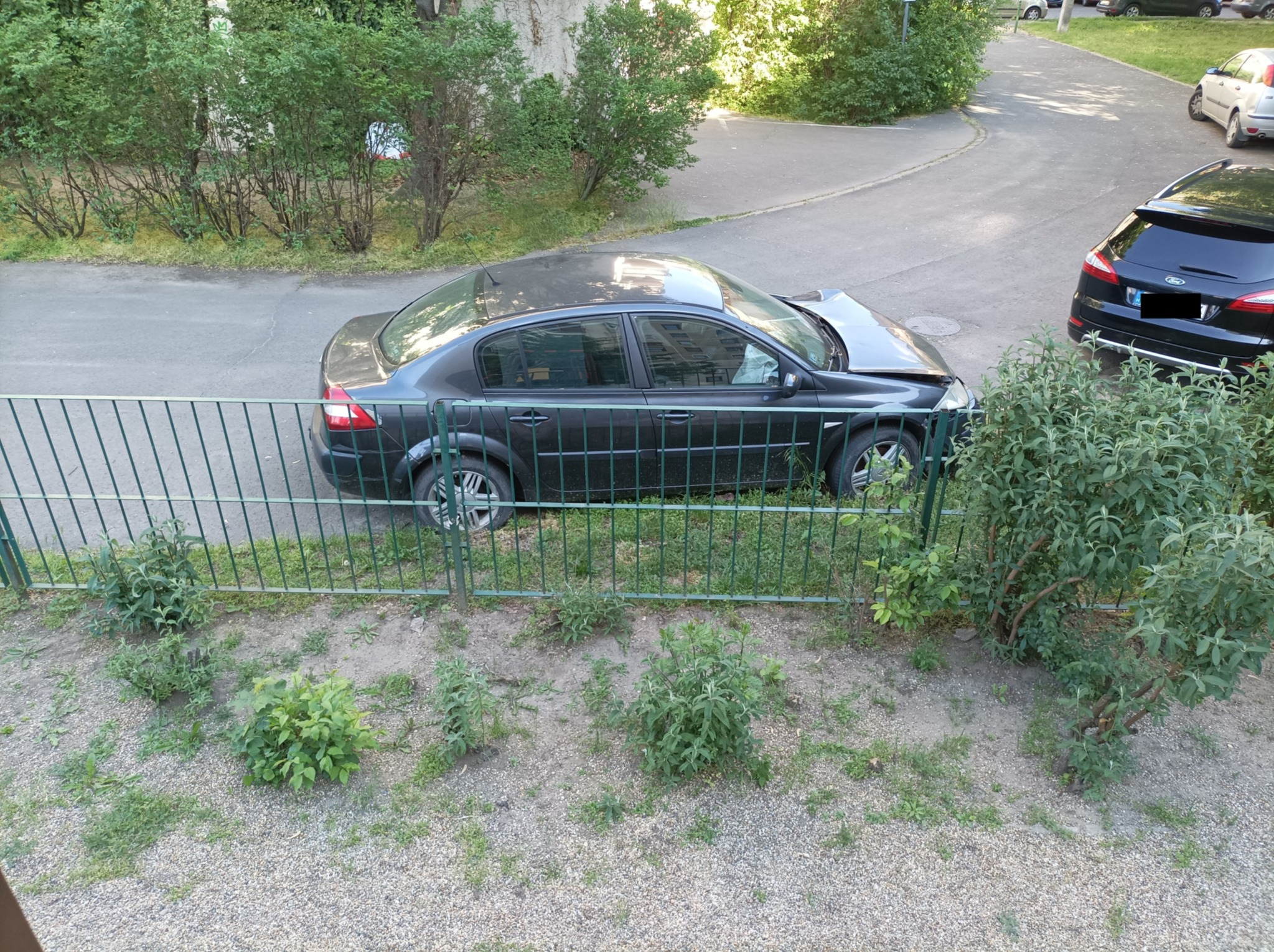 Hónapok óta mozdulatlanul áll és foglalja közterületet ez a fekete Renault láthatóan közúti közlekedésre alkalmatlan állapotban. Kérjük a jármű eltávolítását.
