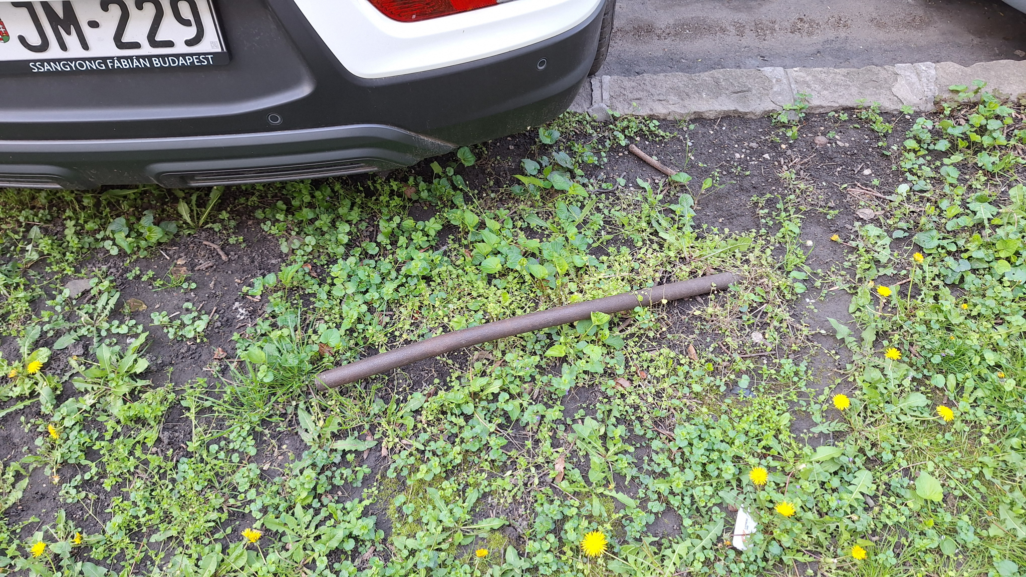 Az Etele út 62/A előtti pakolósáv mellett egy vascső áll ki a földből.