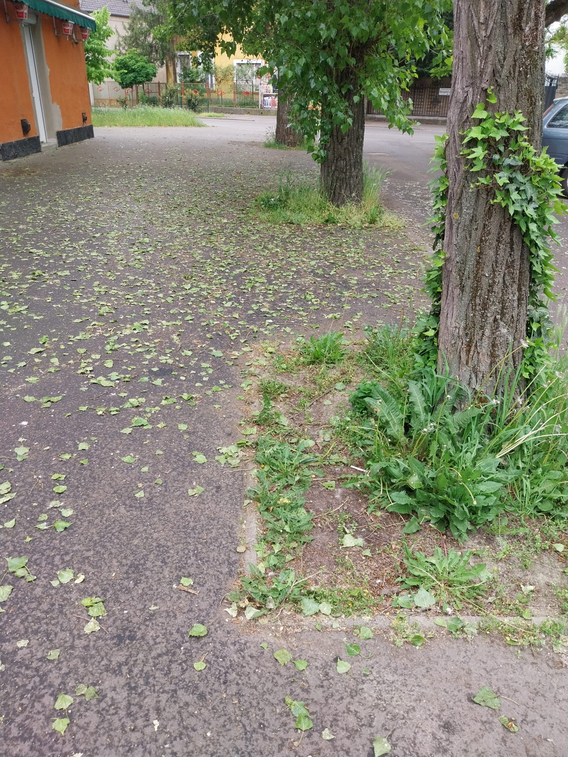 XV. kerület Közvágóhíd utca 27. számú elhagyott ingatlan előtti közterületen illetve közvetlen ingatlan előtti aszfaltozott járdaszakaszon ragacsos lombhulladék, eldobált olajos flakon, szemét található. Területet nem kezeli senki. Említett lombhulladék feltehetően az ingatlan előtti beteg fától ered. Kérném szíves intézkedésüket az fent említett ügyben. Köszönöm.