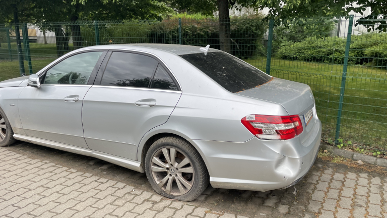 Honapok ota ott all az osszetort leengedett kereku ezust szinu Mercedes