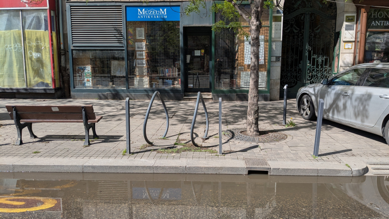 Budapesten, az 5. és 8. kerületben, a Múzeum körúton több helyen nem folyik le eső után rendesen a csatornába az esővíz. Eső után napokig áll a kerékpársávokon. Az alábbi helyek biztosan érintettek: