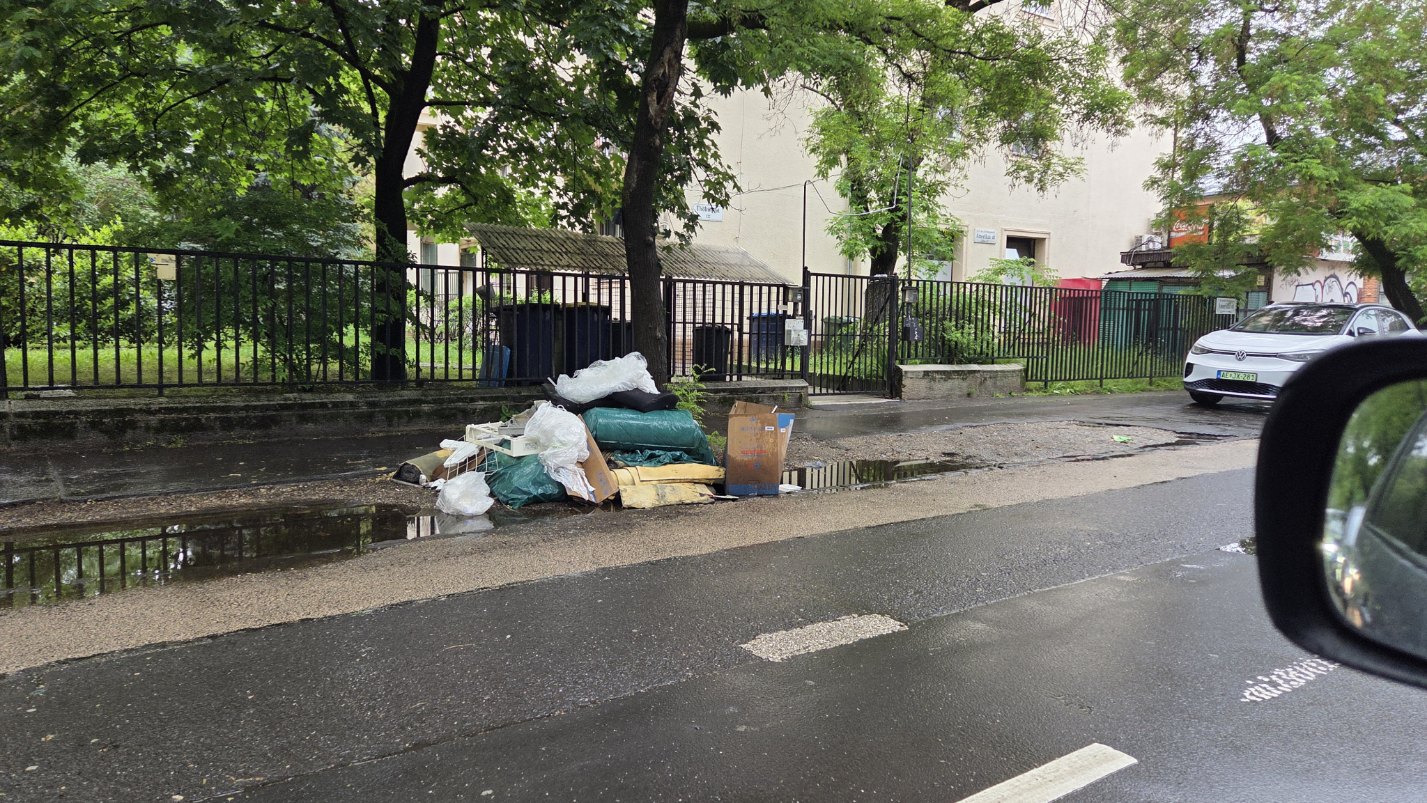 Az Amerikai út 27 előtt napok óta áll egy szemétkupac.