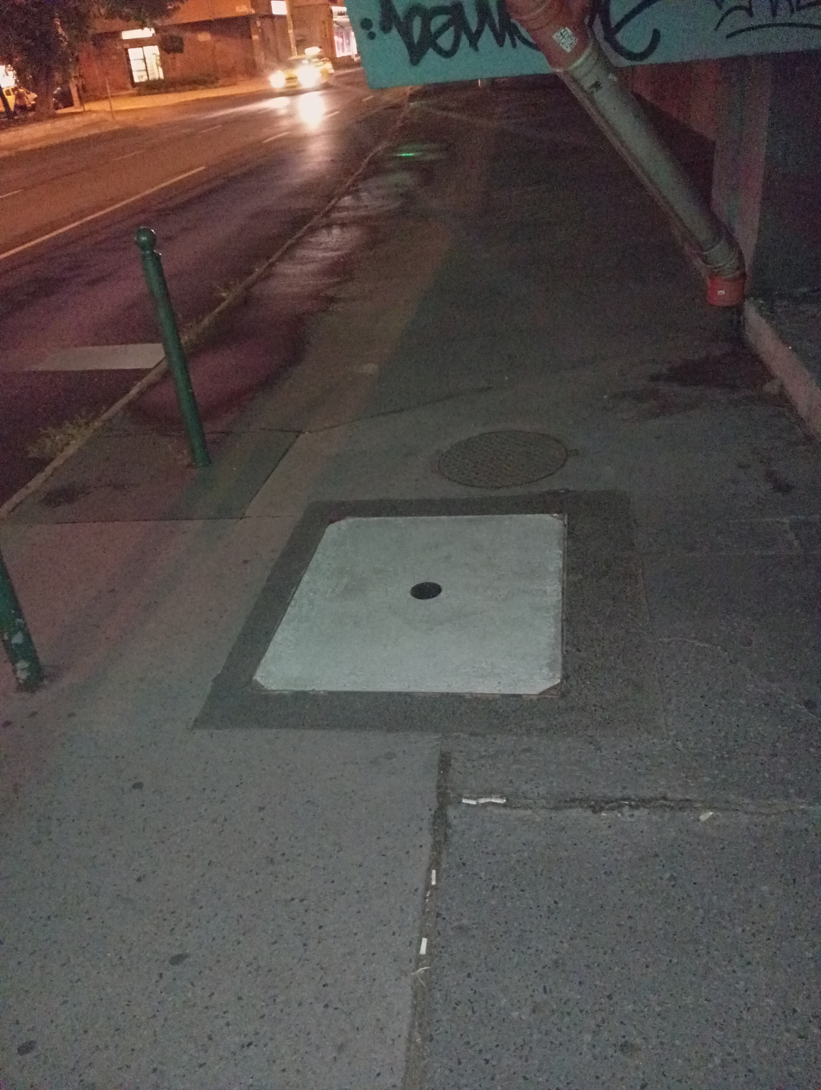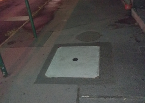 Kérem az illetékest, hogy a képen látható felpúposodó aknafedelet legyenek szívesek kicserélni!