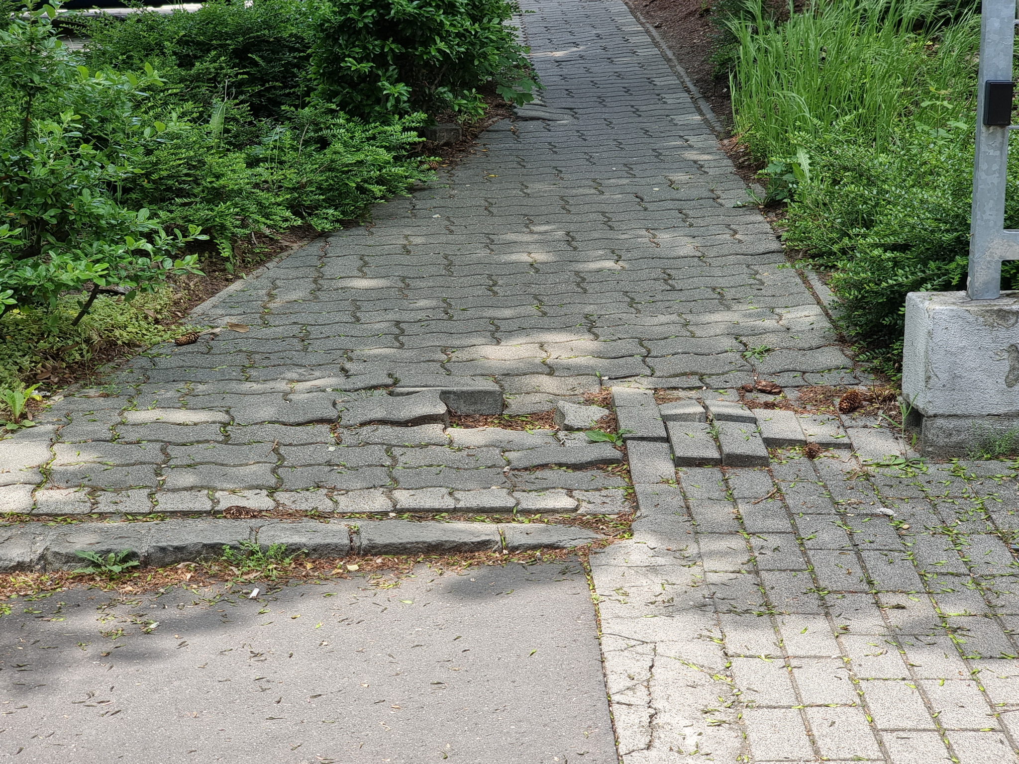 A térkőből kirakott járda balesetveszélyessé vált az Ibrahim u.ban.