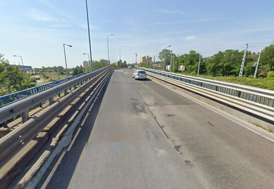 A jelzet helyen rohamosan bomlik a felüljáró útburkolata.