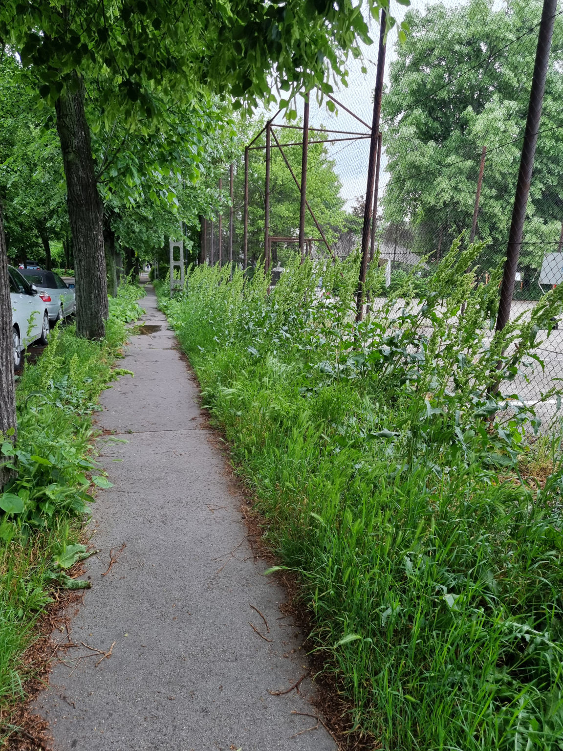 Az Ibrahim utcában, a Ciszterci Apátság telke mellett (parkolóként üzemel), hatalmas a gaz a járda mindkét oldalán.