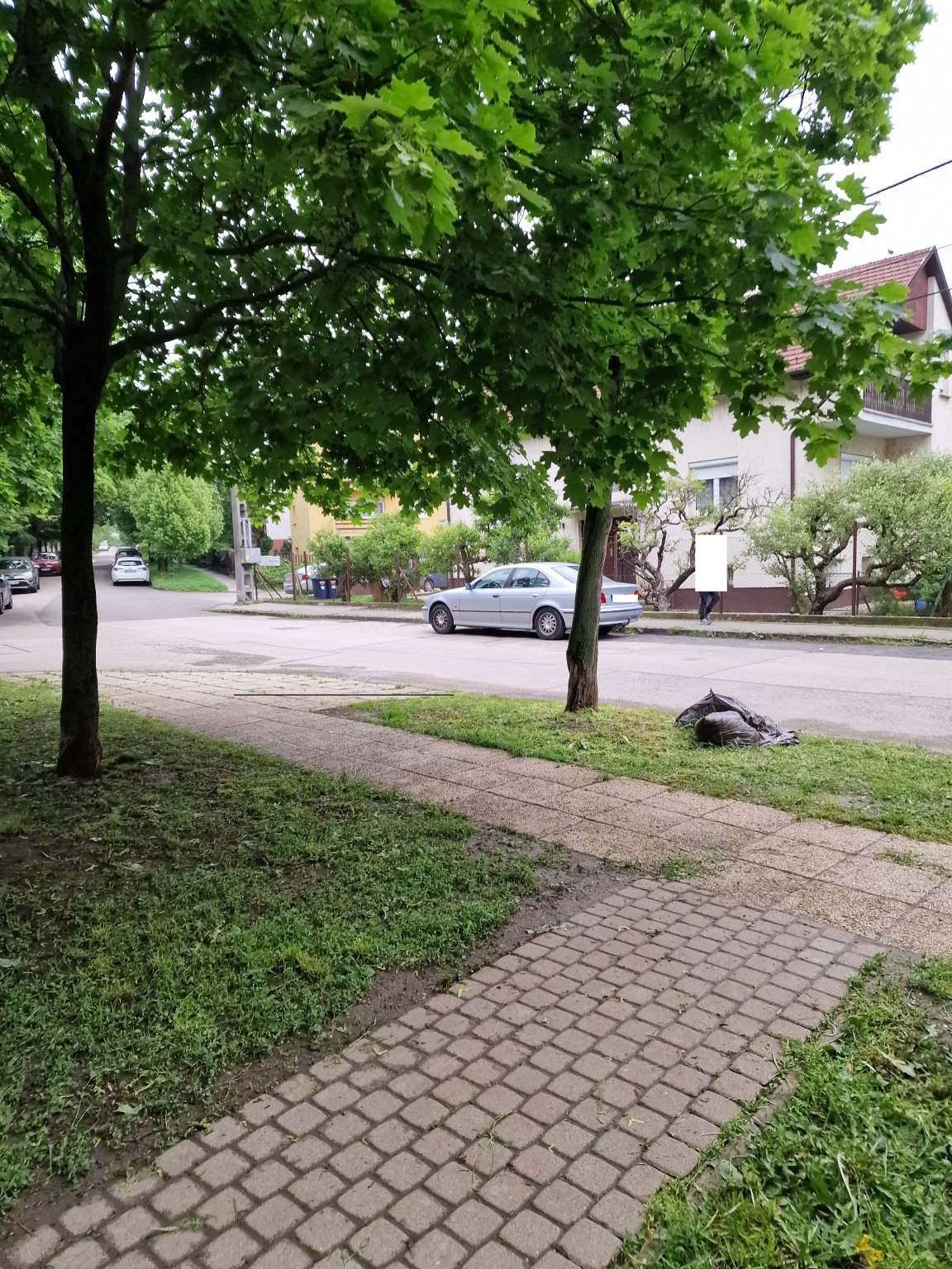 Két zsák szemét a Beregszász téren a Sümegvár utca 26-al szemben.