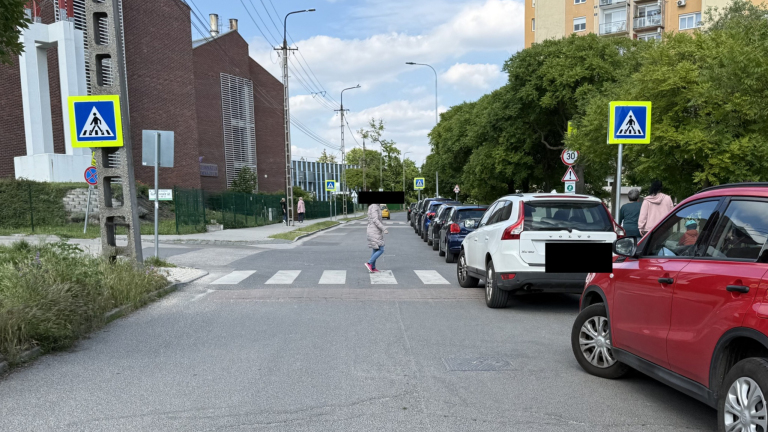 A képen látható parkolás rendszeres, szükség lenne valami fizikai akadályra, hogy a zebra előtti 5 métert betartsák az autósok. Iskolánál ugye nem kell magyarázni, miért gond, ha beláthatatlanná parkolnak egy zebrát? Ráadásul gyakran SUV-ok állnak itt, amik egy kisgyereket simán kitakarnak.