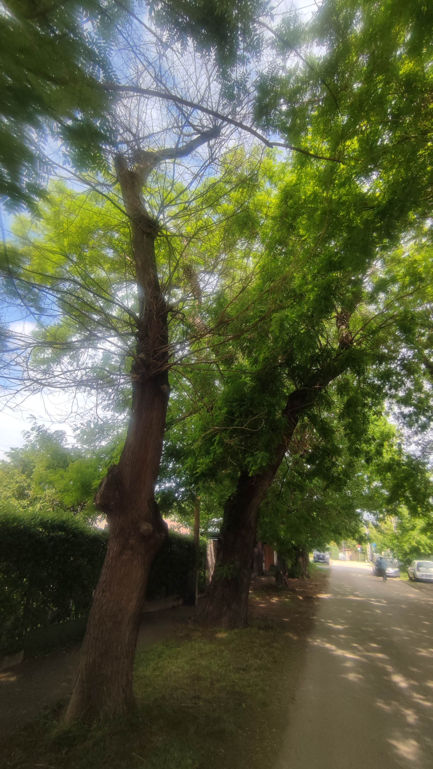 A kiszáradt fa közvetlen közelében több másik fa is található, amelyek az évek során jelentősen megnőttek. Jó lenne ezeket is megritkítani, mert már erősen belógnak az úttest és a járda fölé.