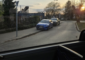 Járdára parkolás, busz akadály