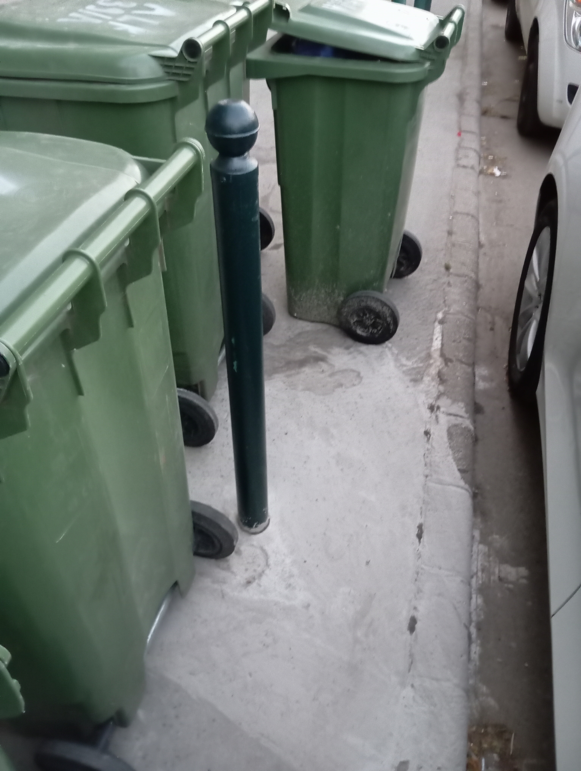 Kérem az illetékest, hogy a képen látható pollert tegyék vissza a helyére!
