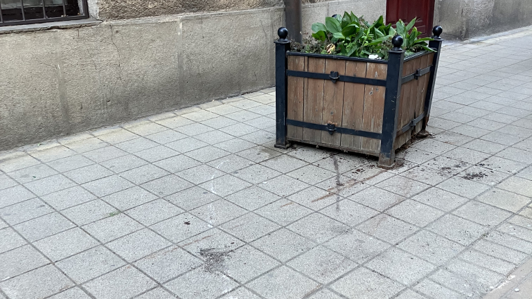 Május 10-én hajnalban 1094 Bokréta utca elején egy autó a járda közepére sodort egy virágládát. Jó lenne elvinni onnan.