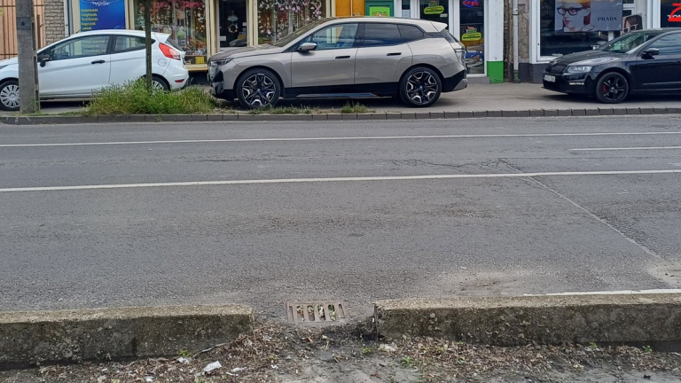 A kereszteződéstől kifelé legalább kettő csatornanyílás el van teljesen tömődve. Jön a nyár, ezek miatt nem fog járni az 50-es villamos a nagyobb esők után (+nagyon ügyesen építették ki a padkát, az esővizet a magasabban fekvő úttestről a villamospályára engedik).