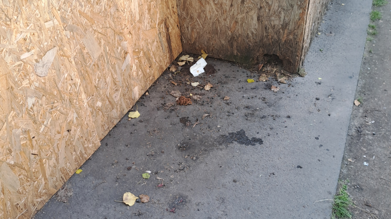 A Jávorka Ádám utca 15. szám alatt található építkezés kerítésénél emberi széklet található a járdán.