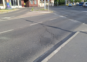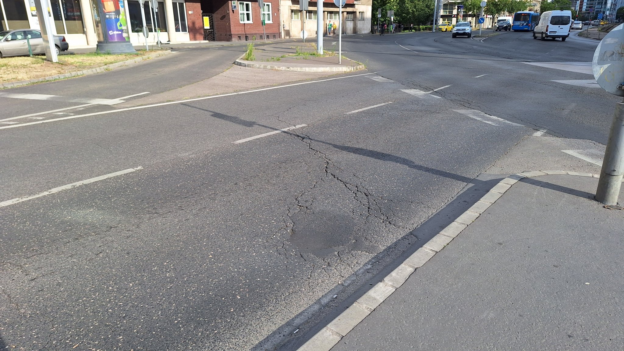 A Boráros téren az IBIS hotel előtt kezd újra kialakulni egy régi kátyú.