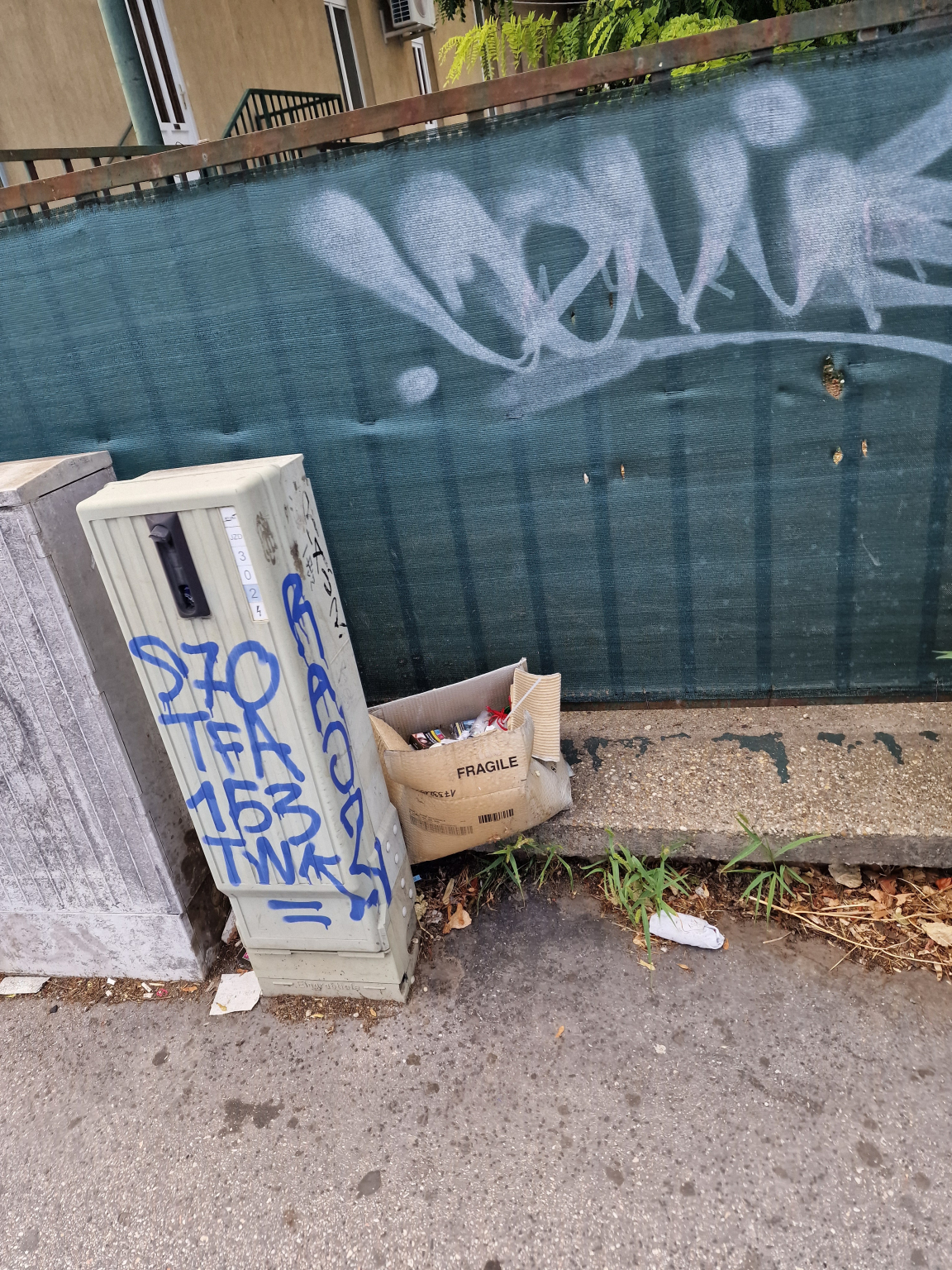 A Budaörsi út 117. előtti szekrény mögé dugott doboz szemét elszállítását szeretném kérni.