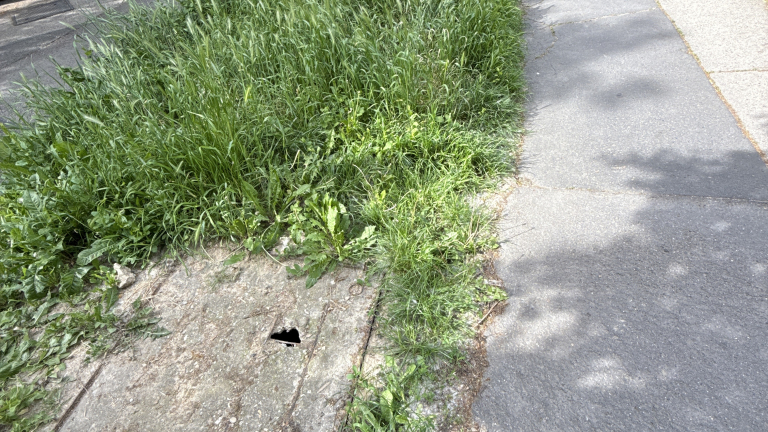 Egy általános iskola mellett, a csatornafedélen lyuk van.