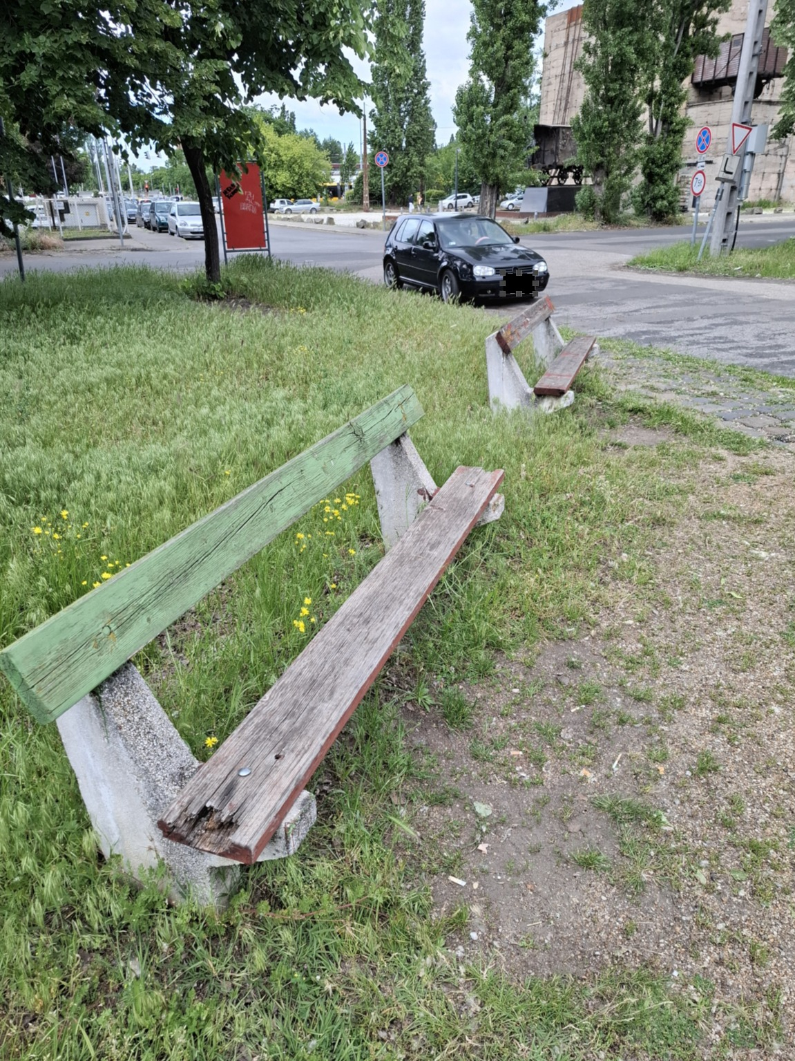 Ferencváros vasútállomás előtti parkban a padokat ráférne egy festés, illetve az elkorhadt fadeszka csere.