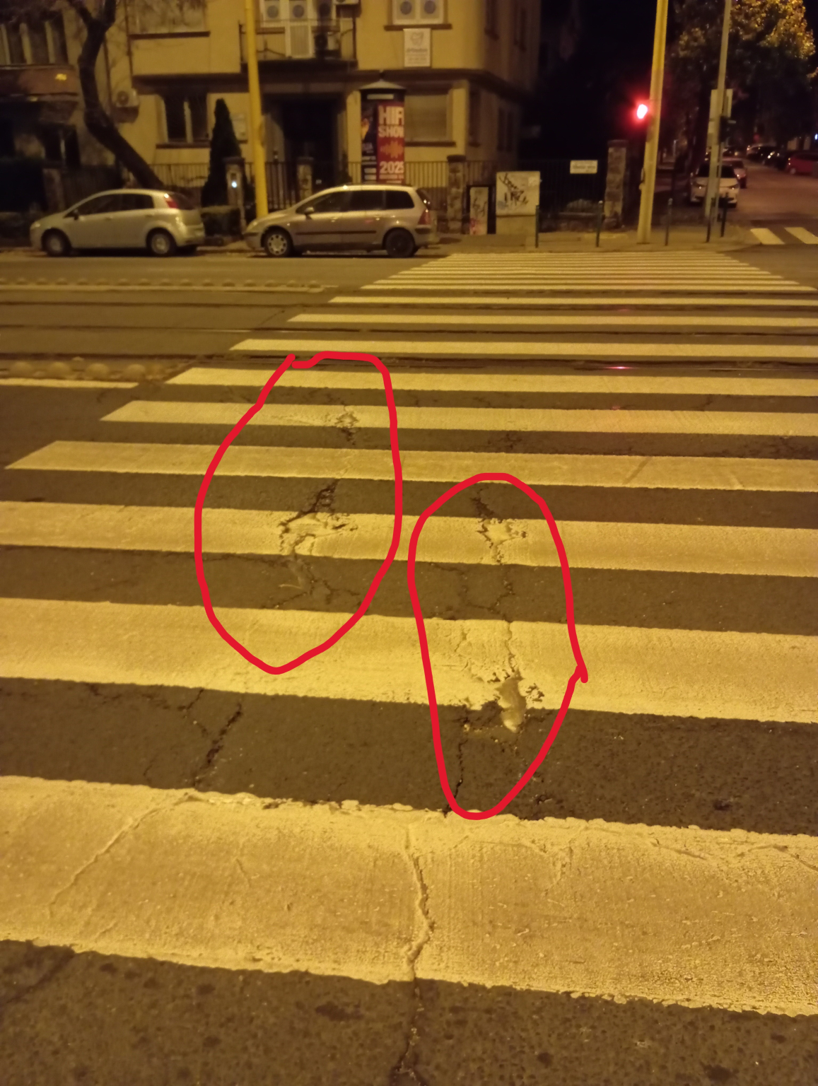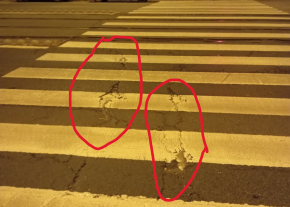 Kátyú gyalogosátkelőhelyen