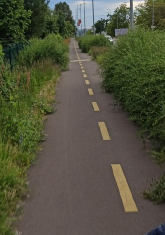 Cinkotai temető mellett eléggé benőtte a gaz a kerékpárutat, sok helyen már nem lehet egymás mellett elférni két irányban.
