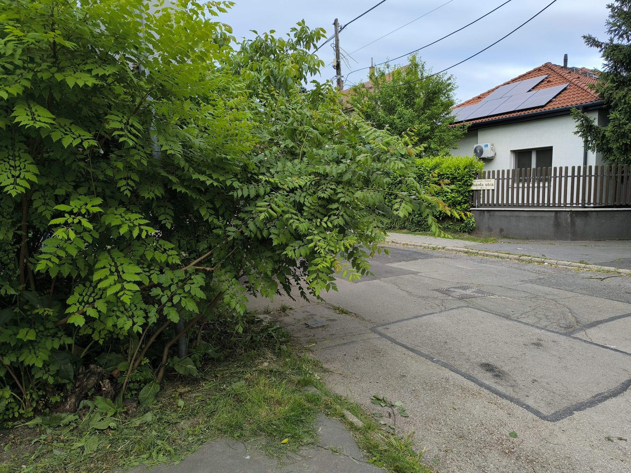 Ha az ember a Neszmélyi út felől érkezik a Csárda utcába, a belógó ágak miatt nem lehet látni, ha érkezik autó a csárda utcából