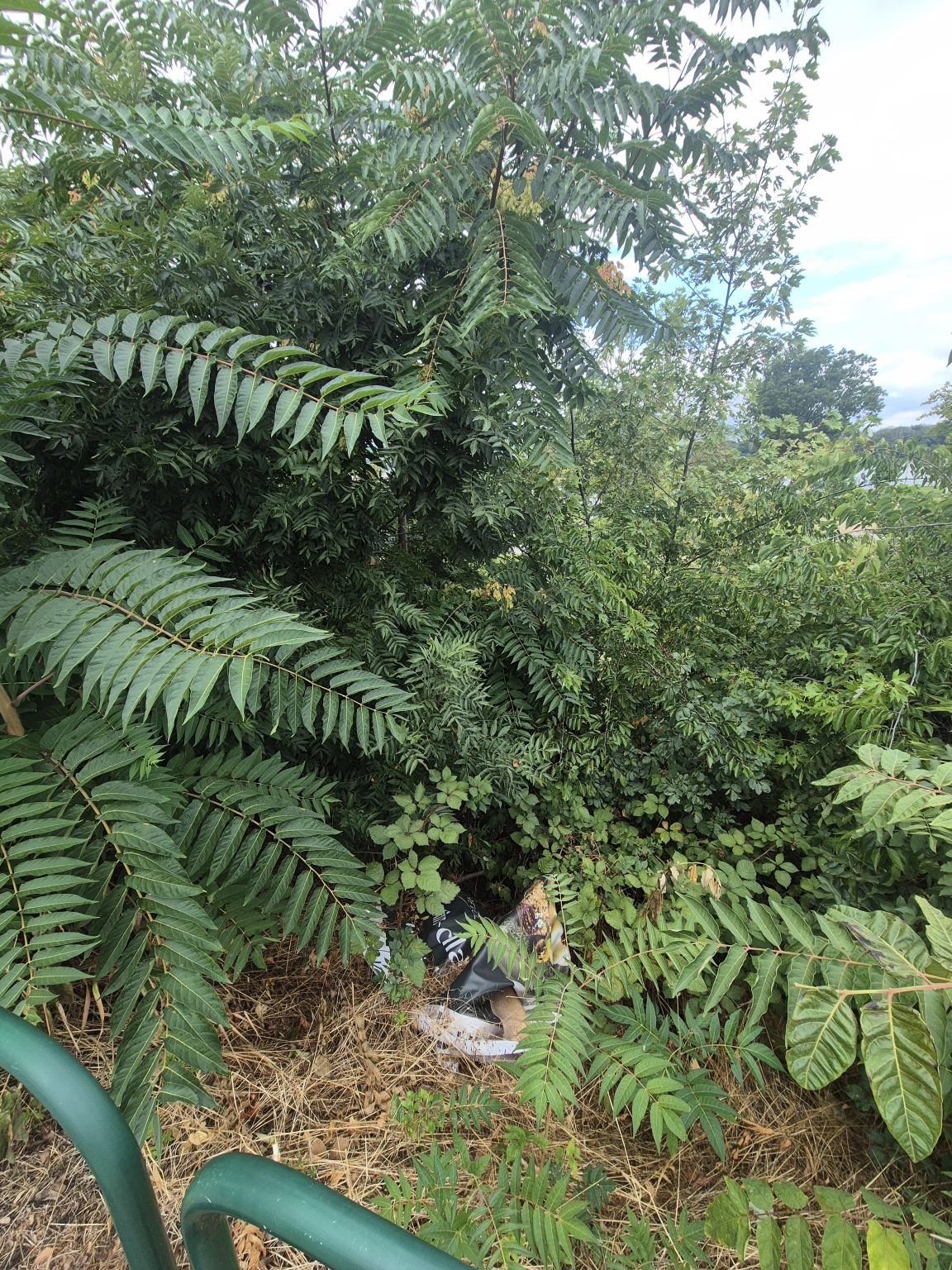 A Dagályfürdő mellett az Árpád-híd felhajtója mellett évek óta gondozatlan a terület. Most is óriási a gyom, hulladékok találhatók a bokrok között, a faágak belógnak a járdára. Ha lelép az ember a kerékpár sávra emiatt, akár el is üthetik. Kérjük a terület rendbetételét!