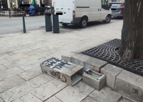 A Balaha Lujza téren a korrózióvédelmi berendezés megrongálódott / nyitott állapotban van. A burkolat alá sok szemét van bedobálva.