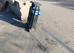 BP. 3. Ker. Huszti út gyalogosjárda mentén kiszakadt szemeteszsák eldobva, szemét szétszórva.