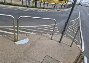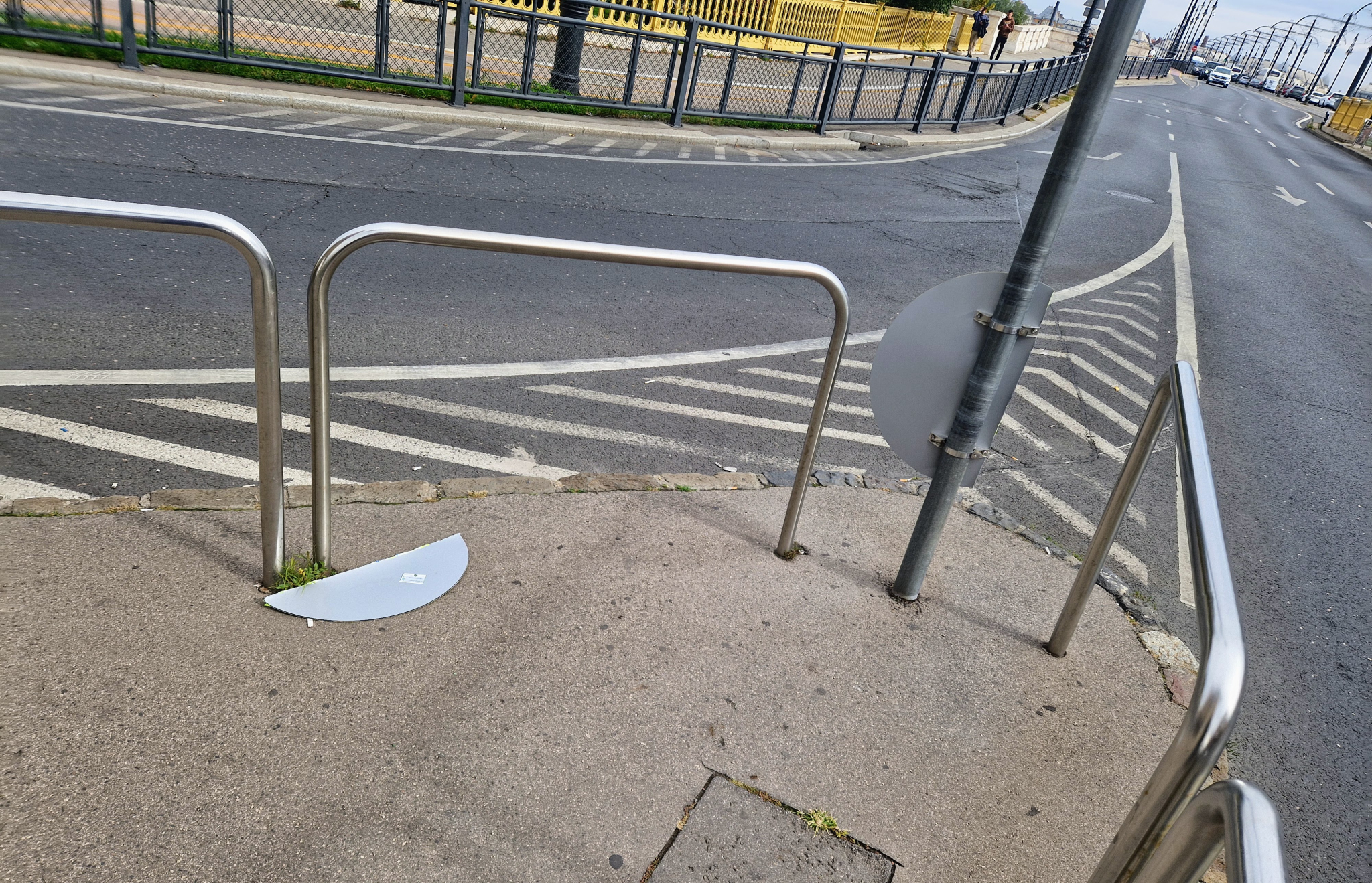 Meggörbült a KRESZ tábla, kérem, cseréljék.