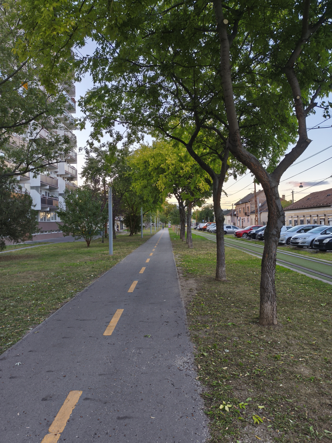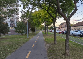 A XX. kerületben, a Török Flóris utca mellett haladó bicikliútra rálógnak a fák ágai, metszeni kellene