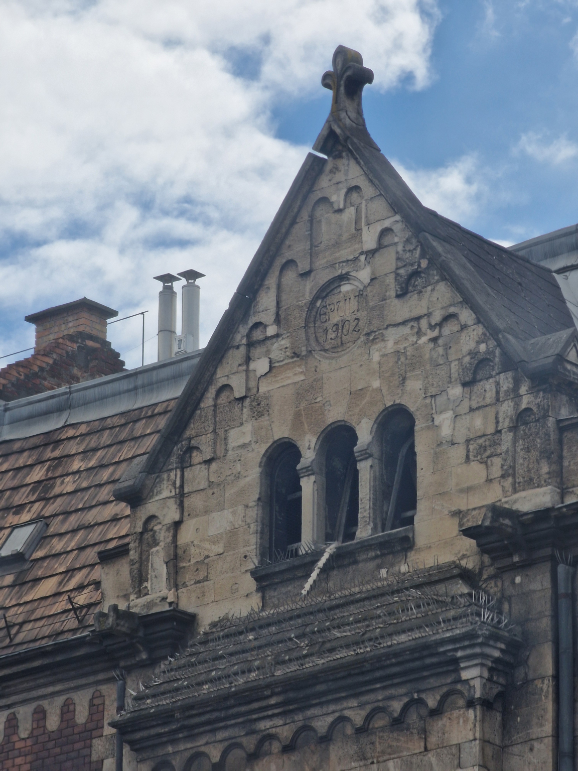 Az Alkotás utca 3. címen lévő épület tetején lógnak a galambtüskék. Ha leesik a járdára a gyalogosokra, balesetveszélyes.