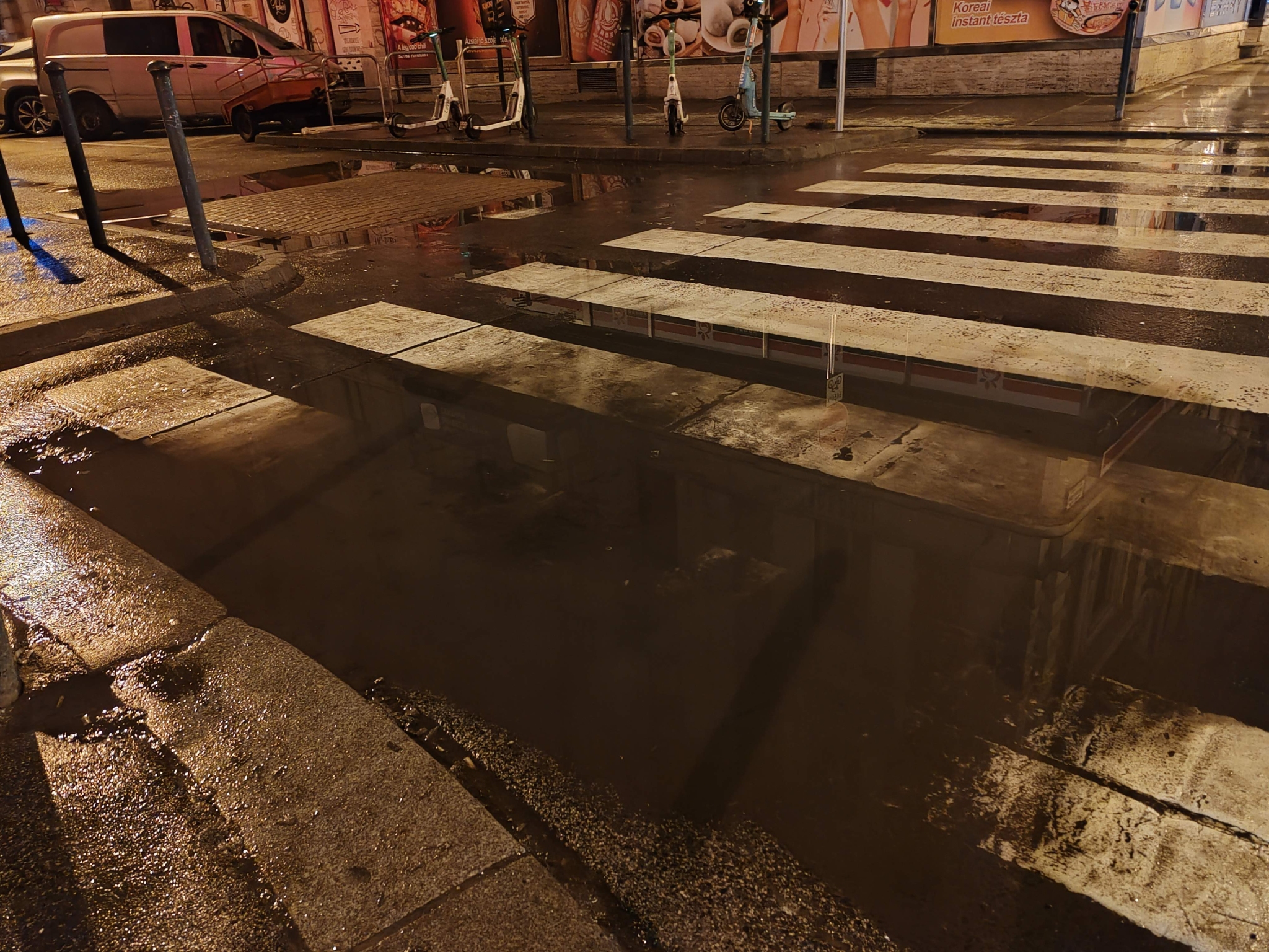 Kérem, javítsák ki a vízelvezetést a gyalogátkelőhelyen.