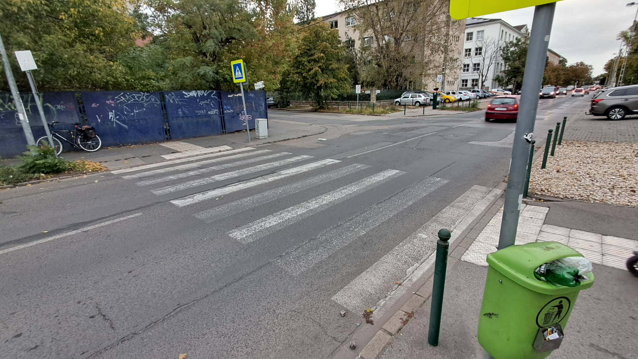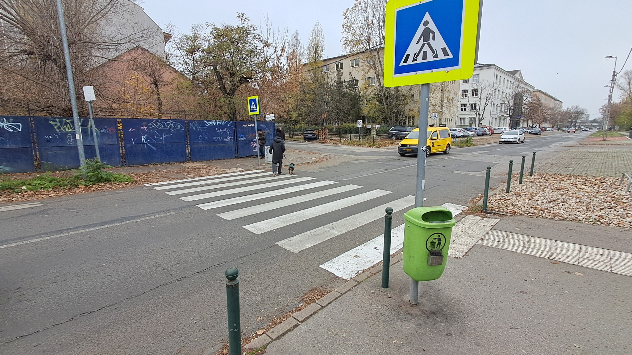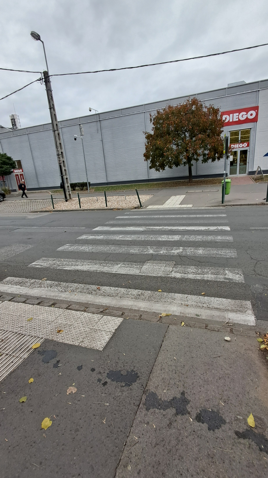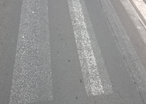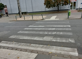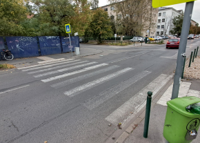 A XIV. ker. Pillangó és Tábornok utca sarkán lekopott a zebra felfestése.