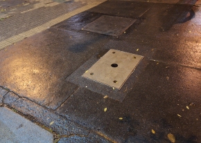 A Róbert Károly körút és a Pap Károly utca sarkán lévő Vilati aknafedél porladófélben van, a kerete pedig szét van rohadva, hézagos.