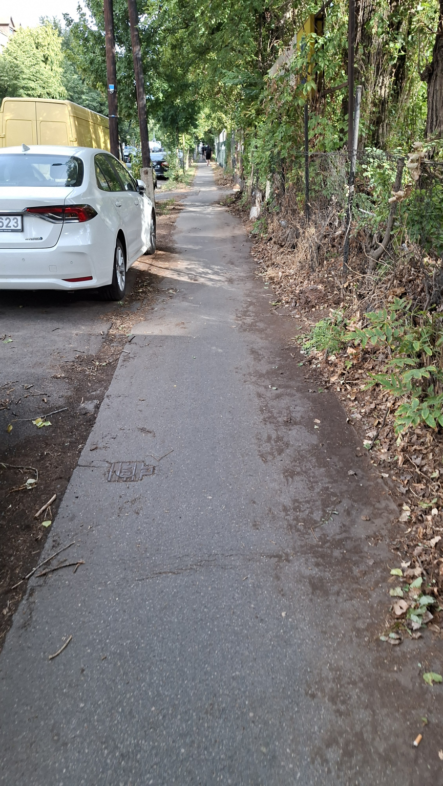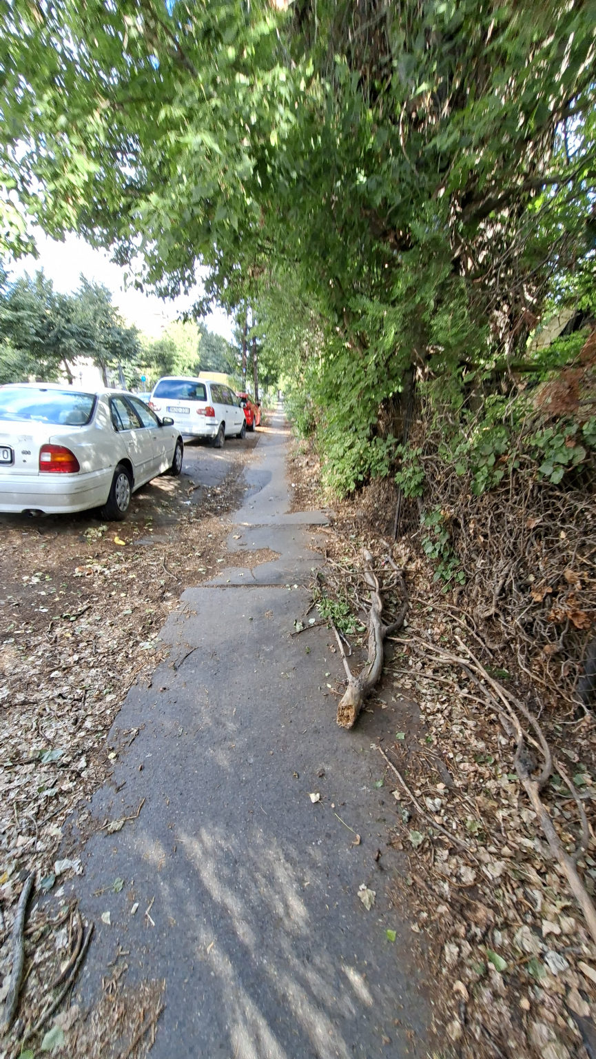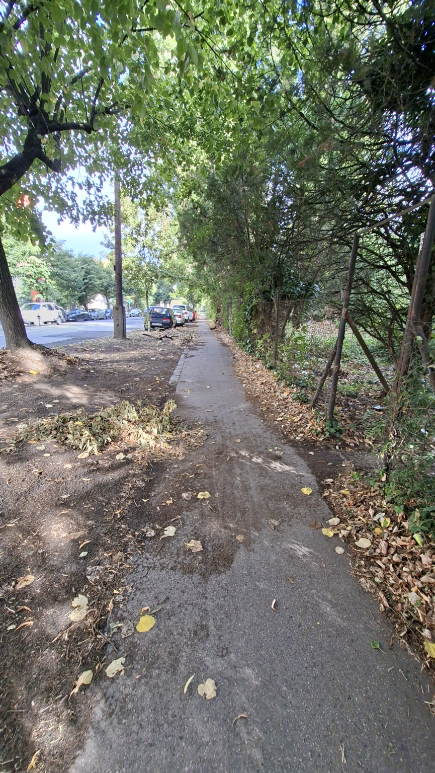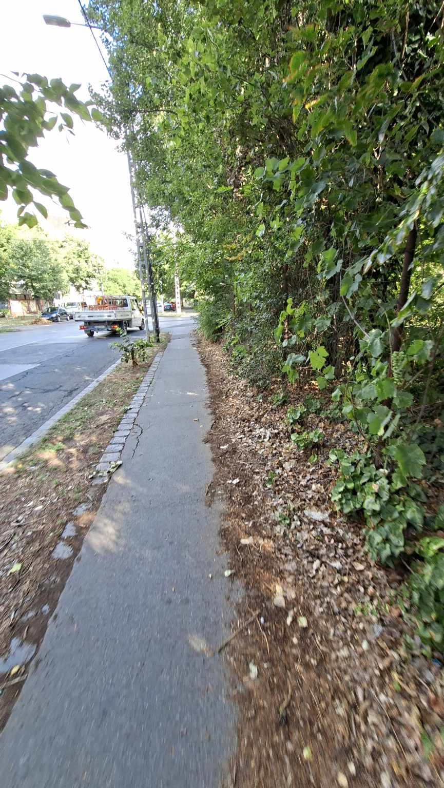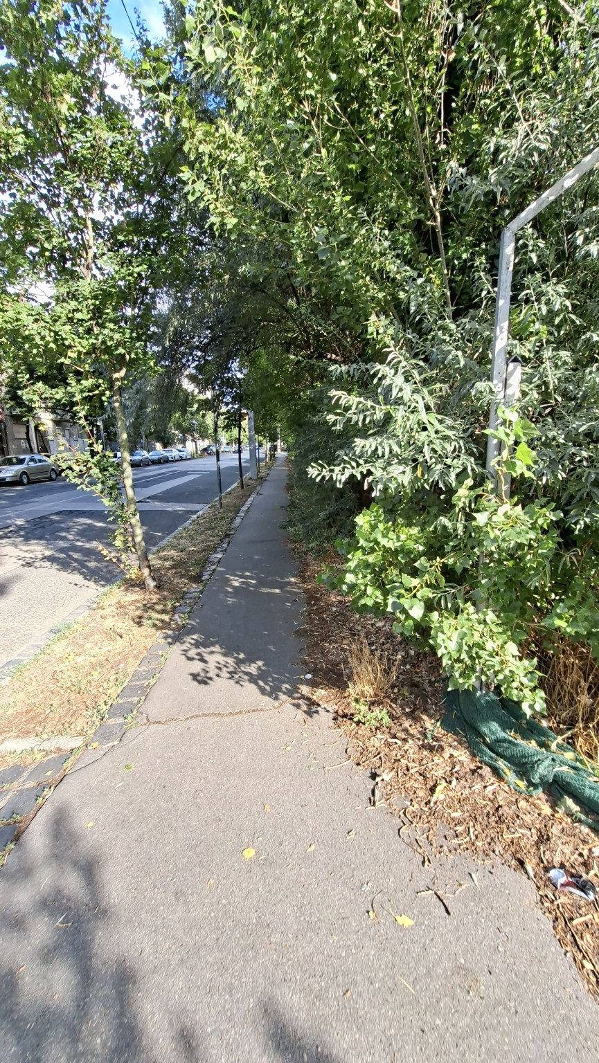 „Az első 50 méteren sikerült rendezni a helyzetet de a maradék 300 méter az érintetlen és csak egyre rosszabb. Vannak helyek ahol az akácfa hajtásai már össze érnek a két oldal felől... és bizony szúrnak a tövisek... és a levágott faágak is csak úgy otthagyva az járda szélén. Balesetveszélyes... van még mit levágni és utána elvinni... nem ott hagyni a járdán keresztbe....”