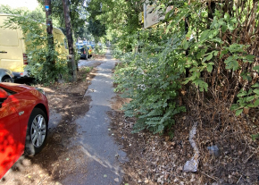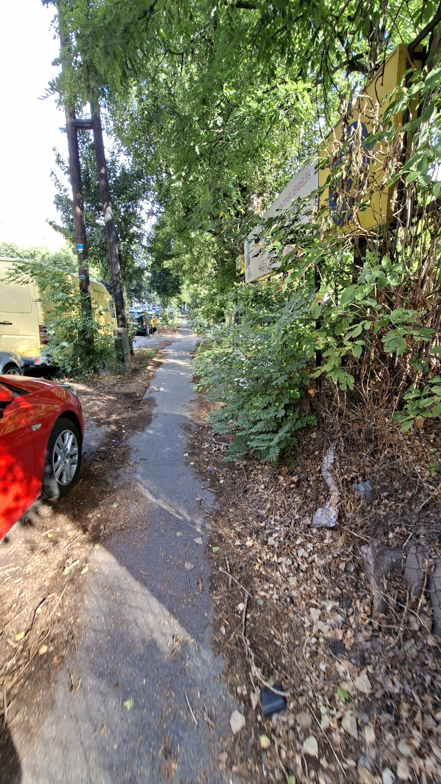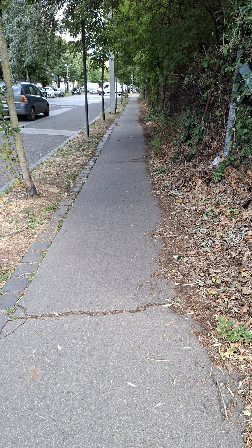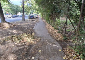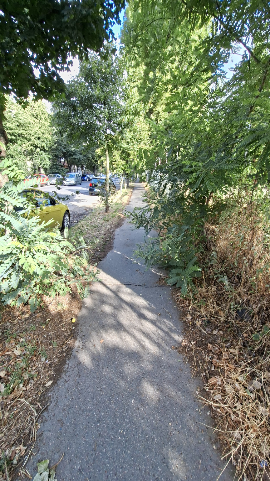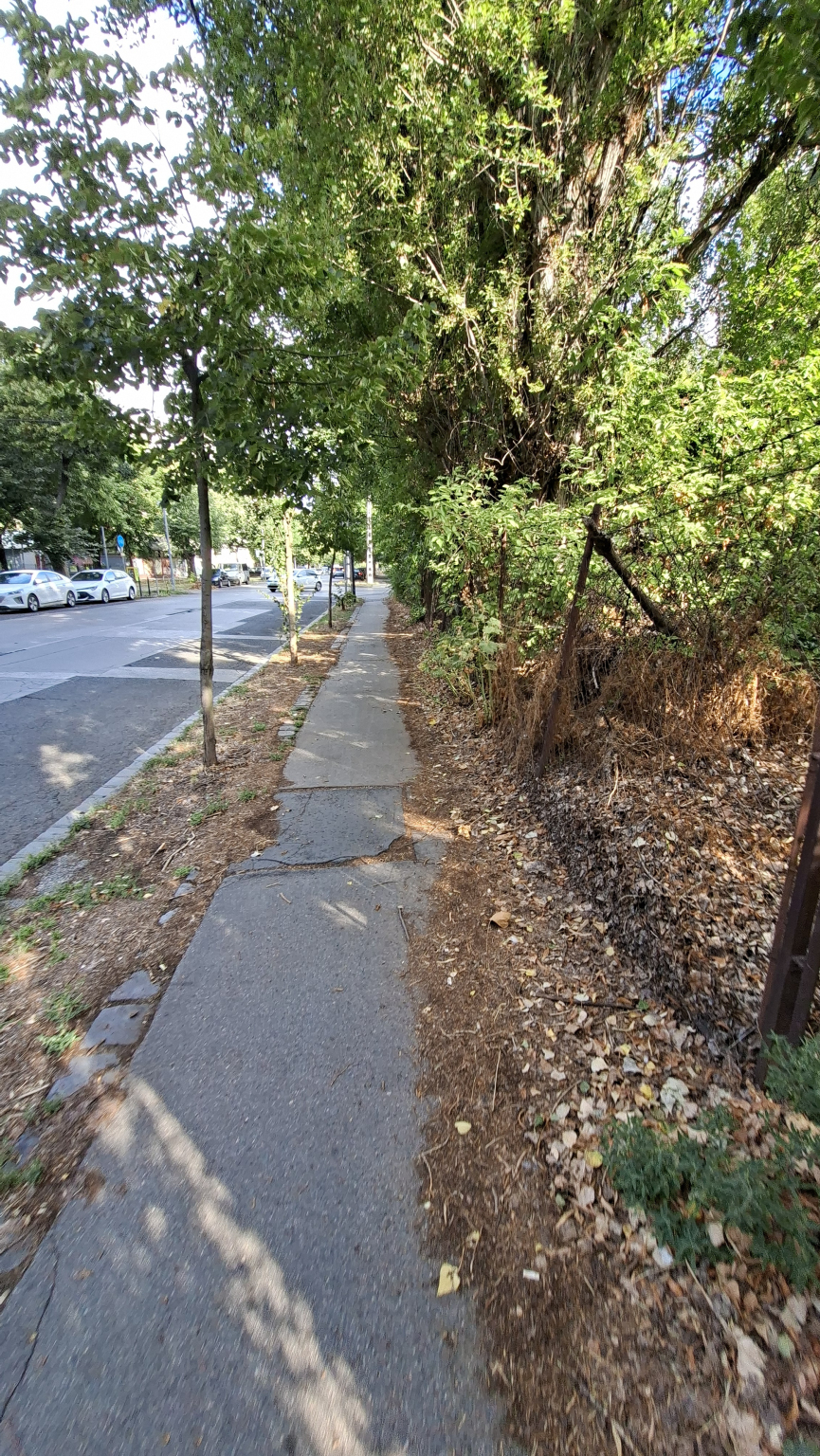 „Az első 50 méteren sikerült rendezni a helyzetet de a maradék 300 méter az érintetlen és csak egyre rosszabb. Vannak helyek ahol az akácfa hajtásai már össze érnek a két oldal felől... és bizony szúrnak a tövisek... és a levágott faágak is csak úgy otthagyva az járda szélén. Balesetveszélyes... van még mit levágni és utána elvinni... nem ott hagyni a járdán keresztbe....”
