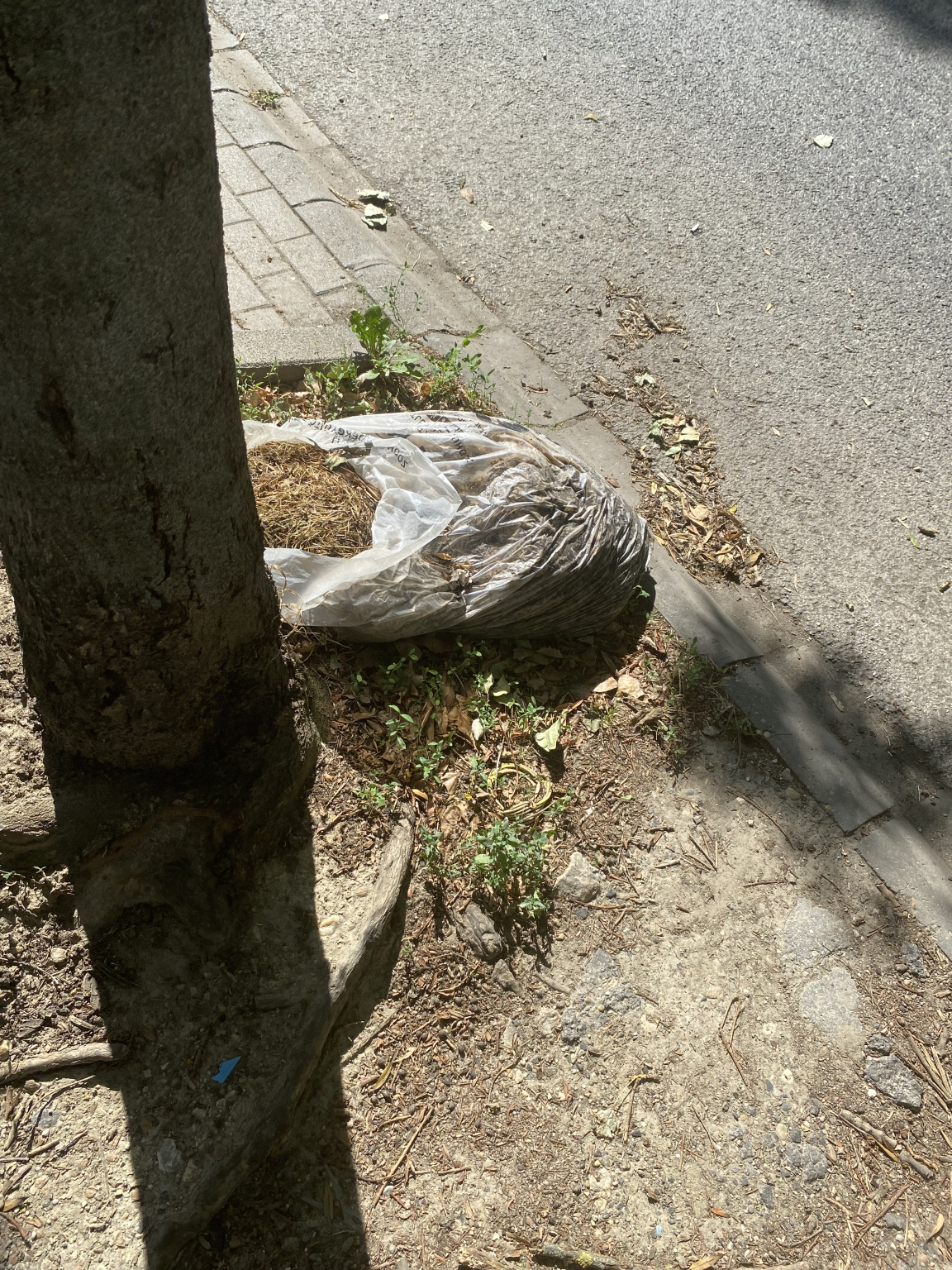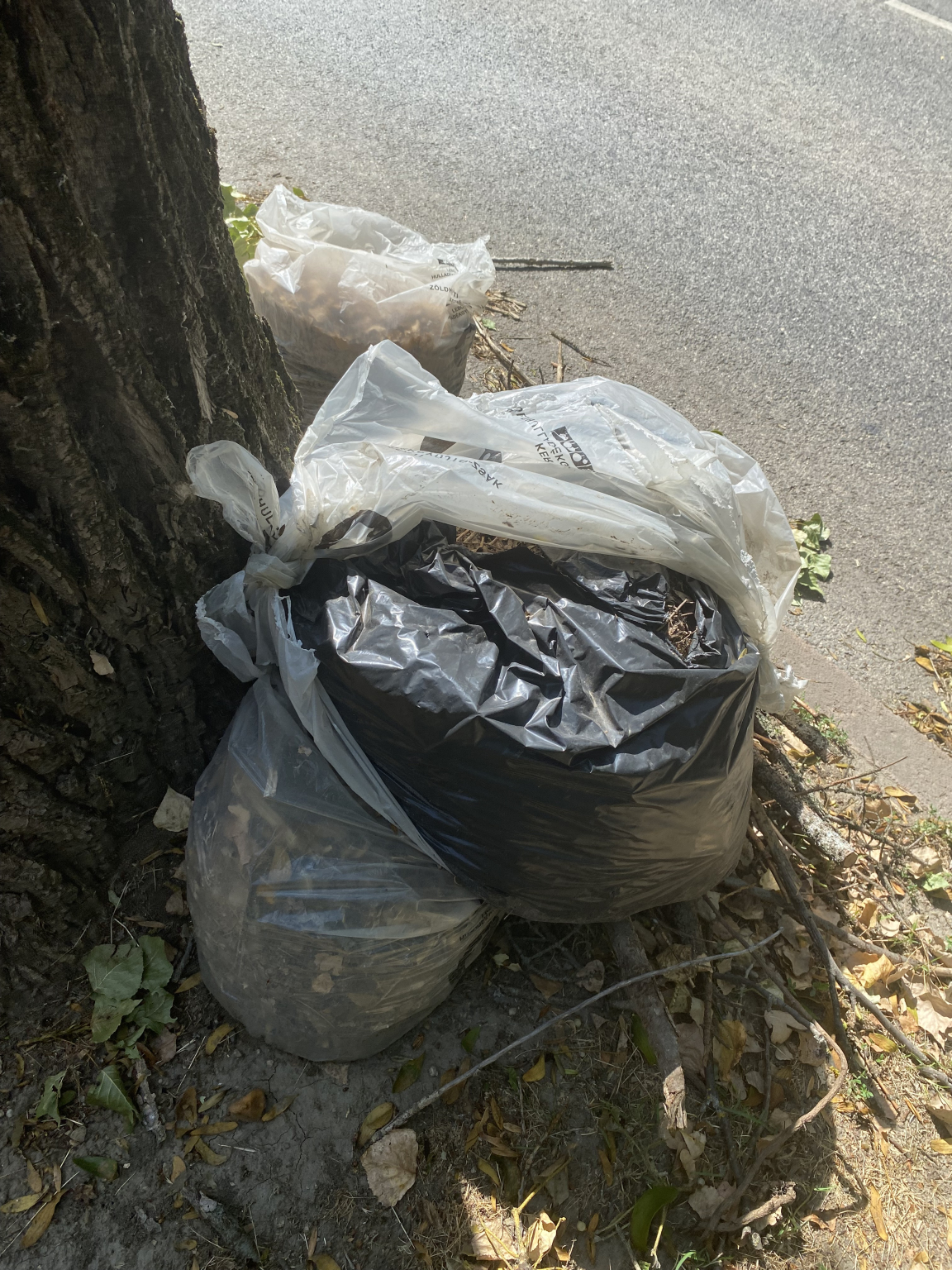 „A fekete zsák még mindig ott van a fa tövében. Ezen kívül több más zöldhulladék zsák is kihelyezésre került, amelyeket úgyszintén nem vittek el hetek óta.”