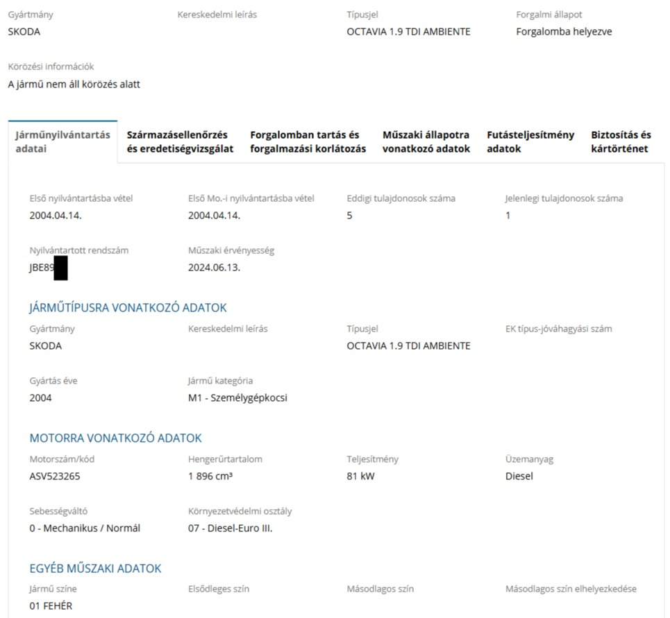 A bejelentő két gépjárművet jelentett be. Kérem szíves tájékoztatását a JB...98-as rendszámú fehér Skodáról is, mely a bejelentés alapján a Sáfrány utca 54. magasságában áll.