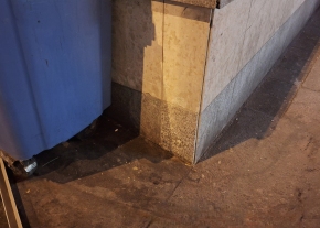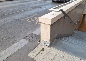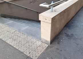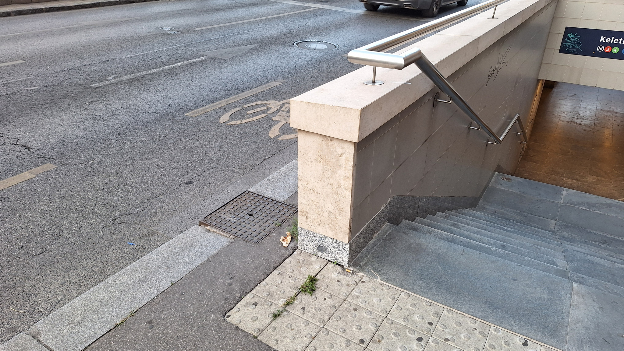 A Keleti pályaudvarnál lévő aluljáró "H" lépcsőjénél két oldalon hiányos a burkolat, az "A" lépcsőnek pedig a hátsó sarkánál.