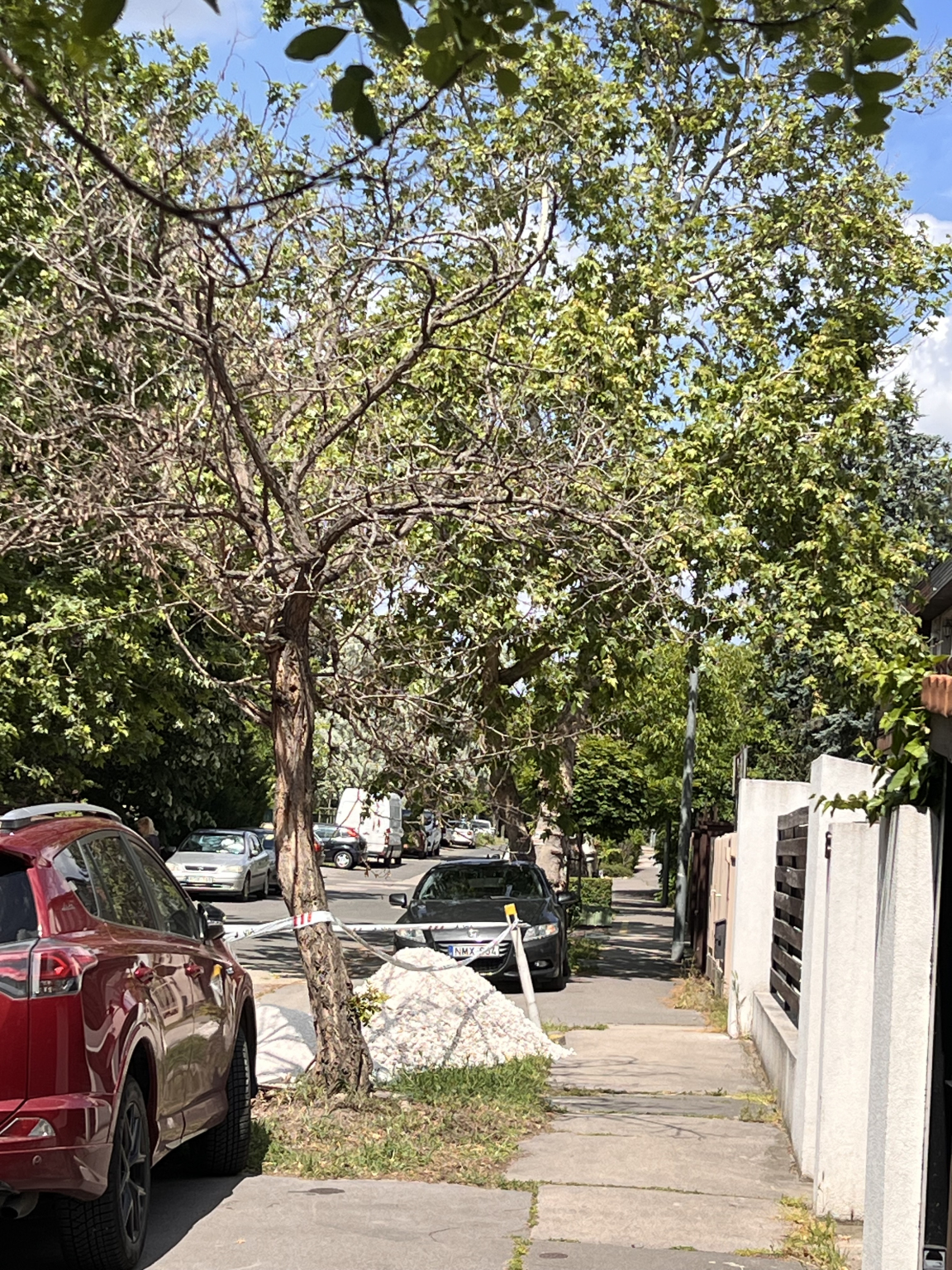 Kiszáradt fa a Lipótvár utca 9. szám előtt.