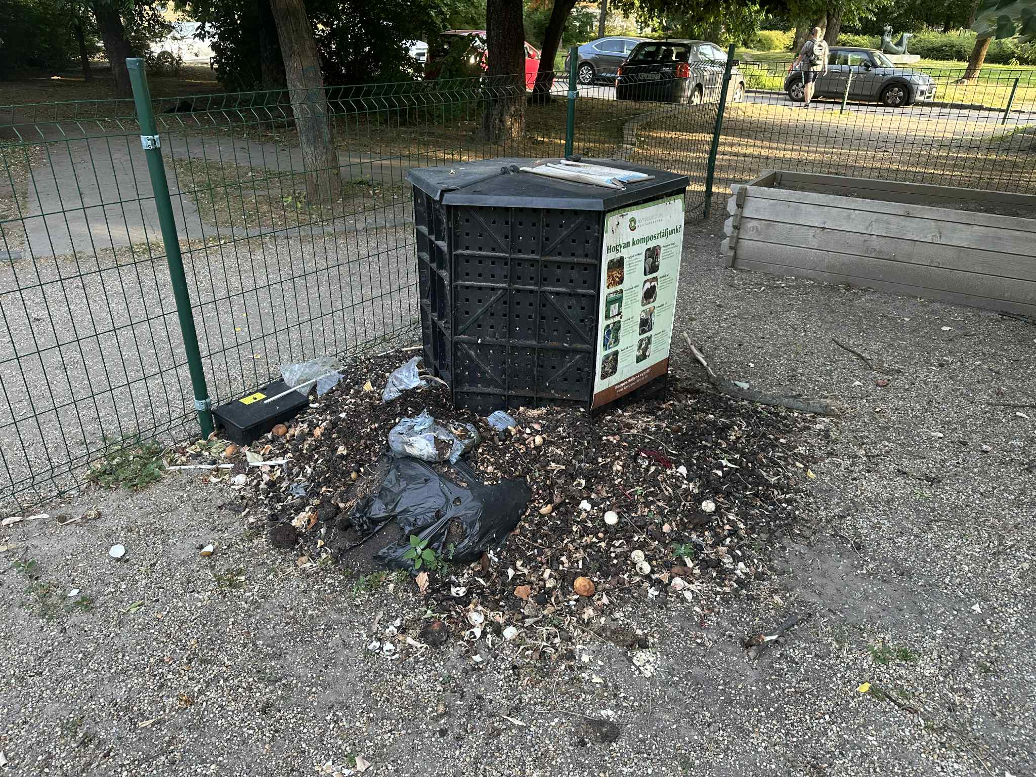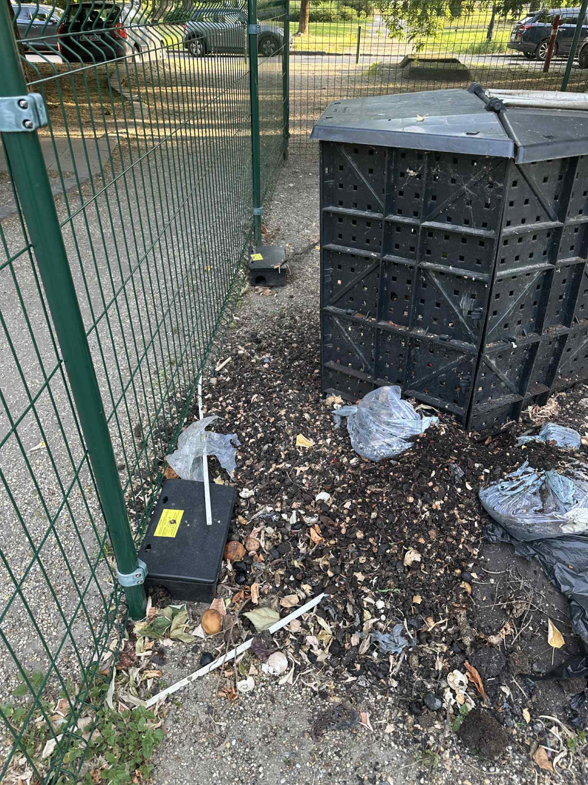 Kérjük az illetékest, hogy vigyék el a játszótér mellöl a patkány csapdákkal körbebástyázott komposztálót. Az ötlet előremutató volt de hosszú ideje látszik, hogy az emberek nem a célnak megfelelően használják és nagy részben szemétlerakóként használják.