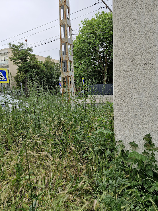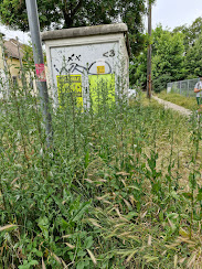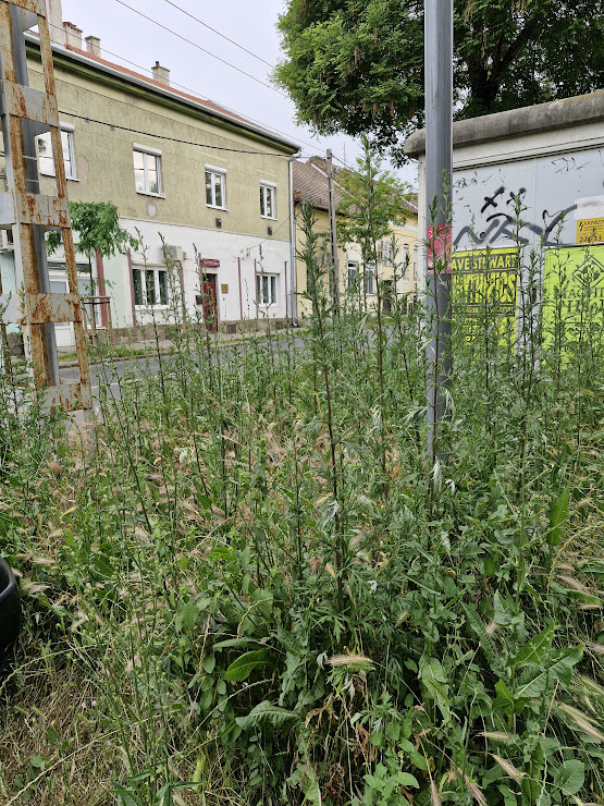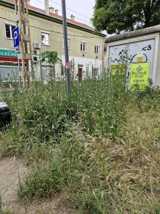 Lőcsei/Szugló sarkán, a kis közműépület környezete rettenetesen elhanyagolt. Embermagasságú gyom, gaz, szemét. Rozsdás oszlop, graffitis fal. Gazdátlan, szégyenteljes.