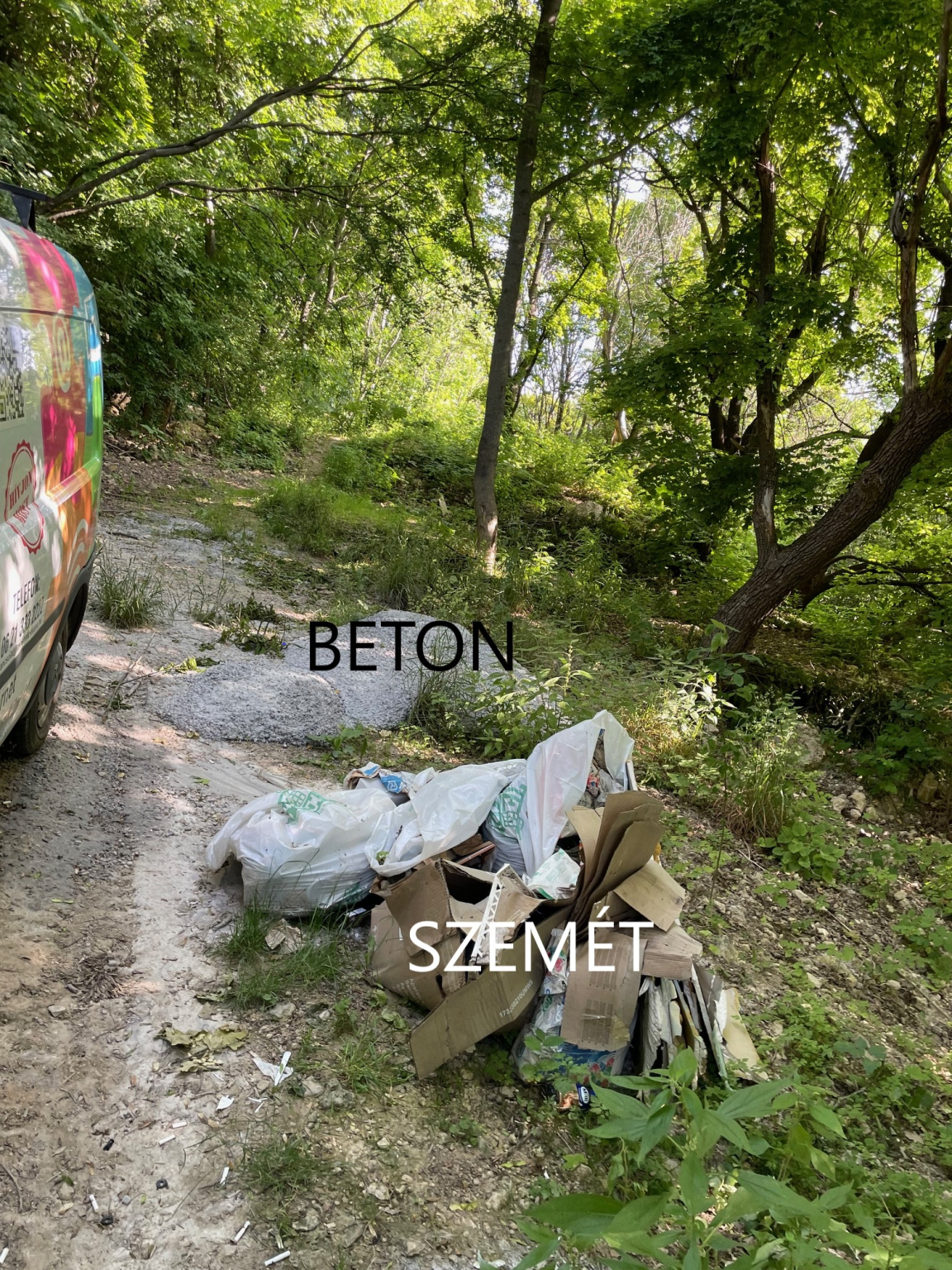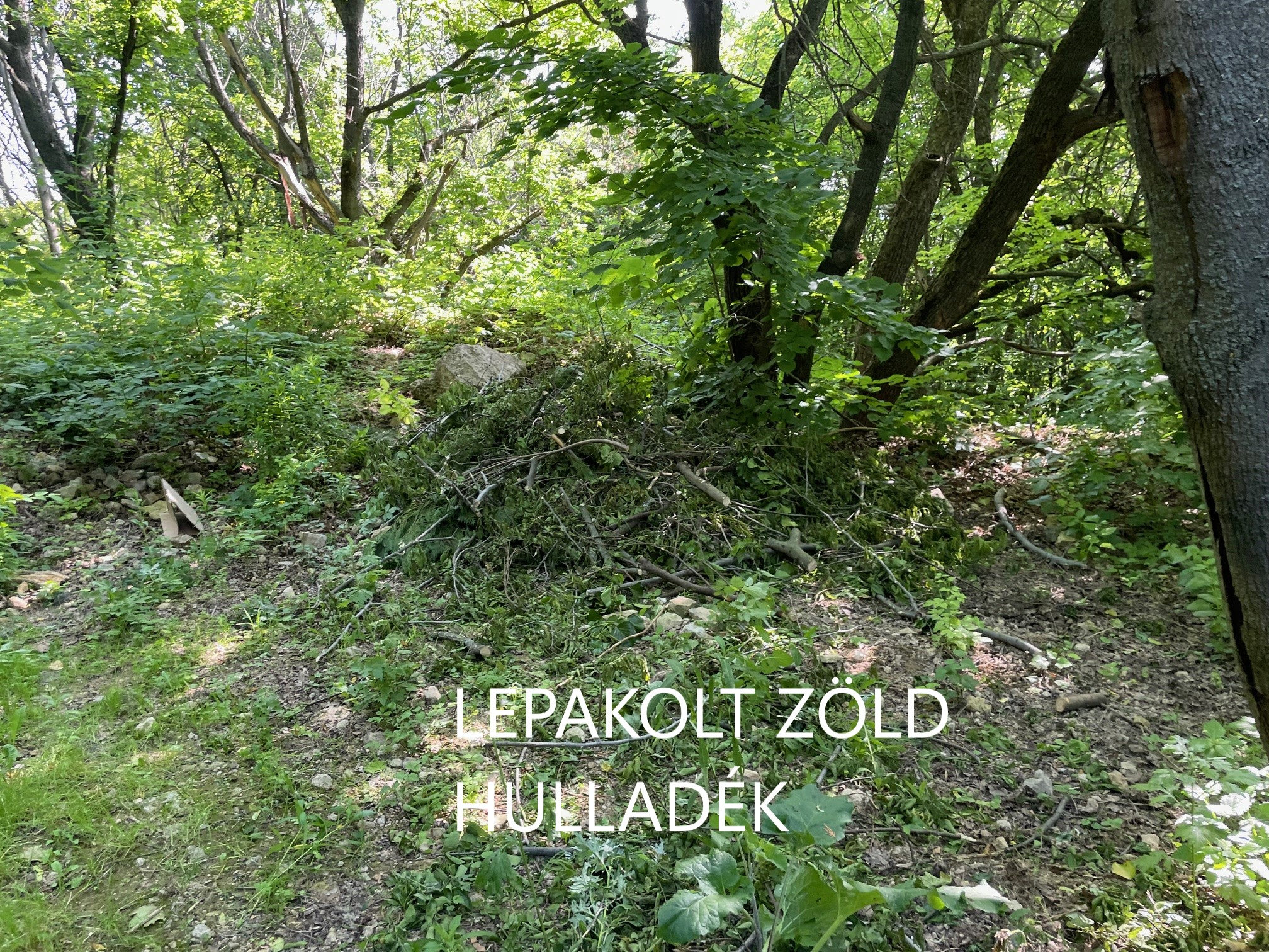 Tegnapi nap egy kék VW Golf pakolta itt ki éppen az utánfutójából a zöld hulladékot. Ami bár nem jó, de azért nem ide kellene dobálni. Elmondása szerint a gyerekvasútnál felborult valami másik autó és onnan hordta ide. Azt nem tudta megmondani, miért pont ide.