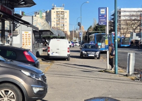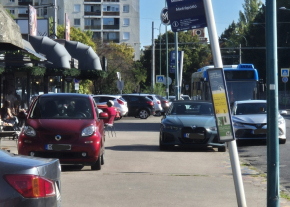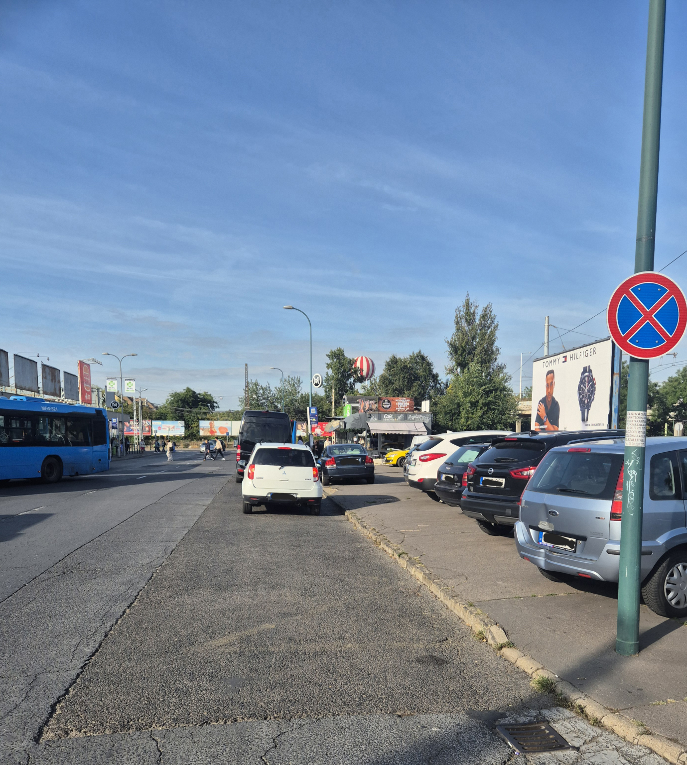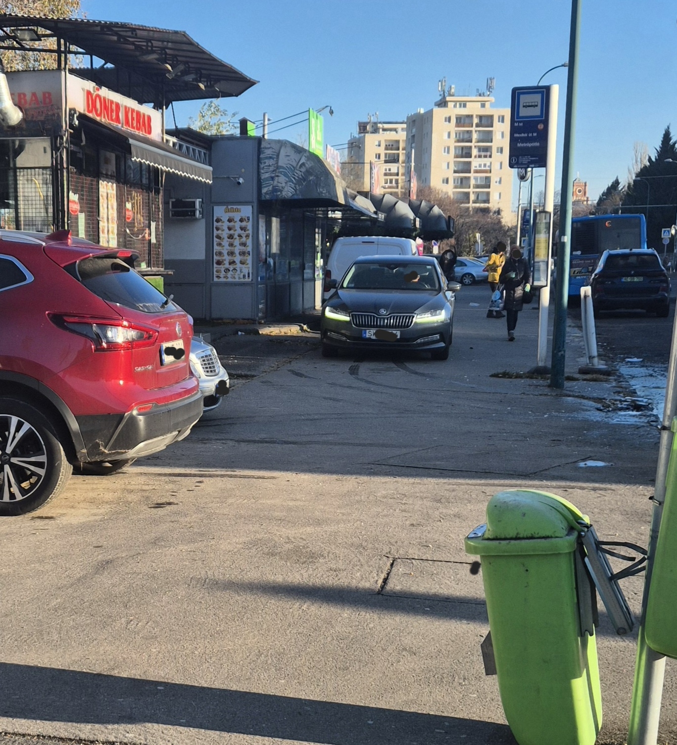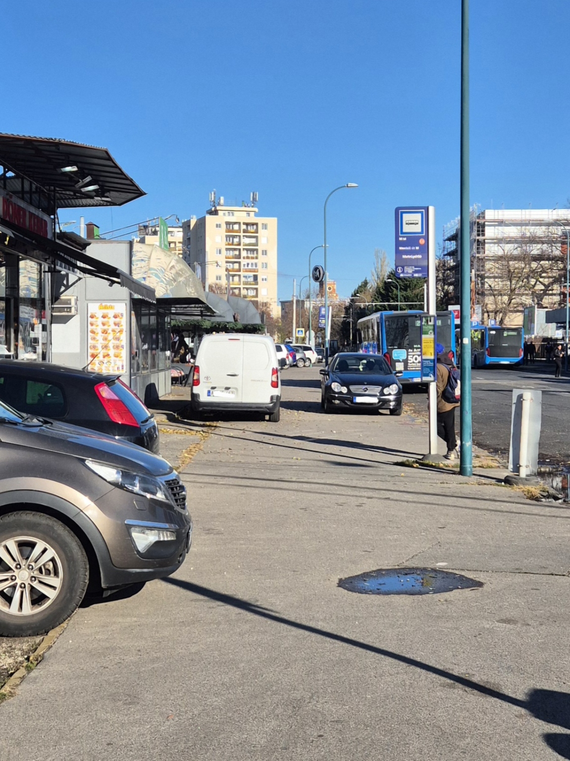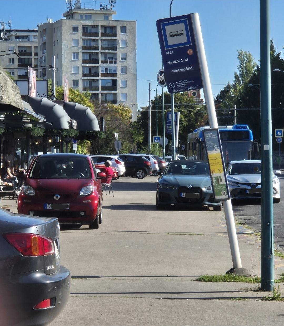 A mexikói úti végallomáson állandóan tele van a járda autókkal.