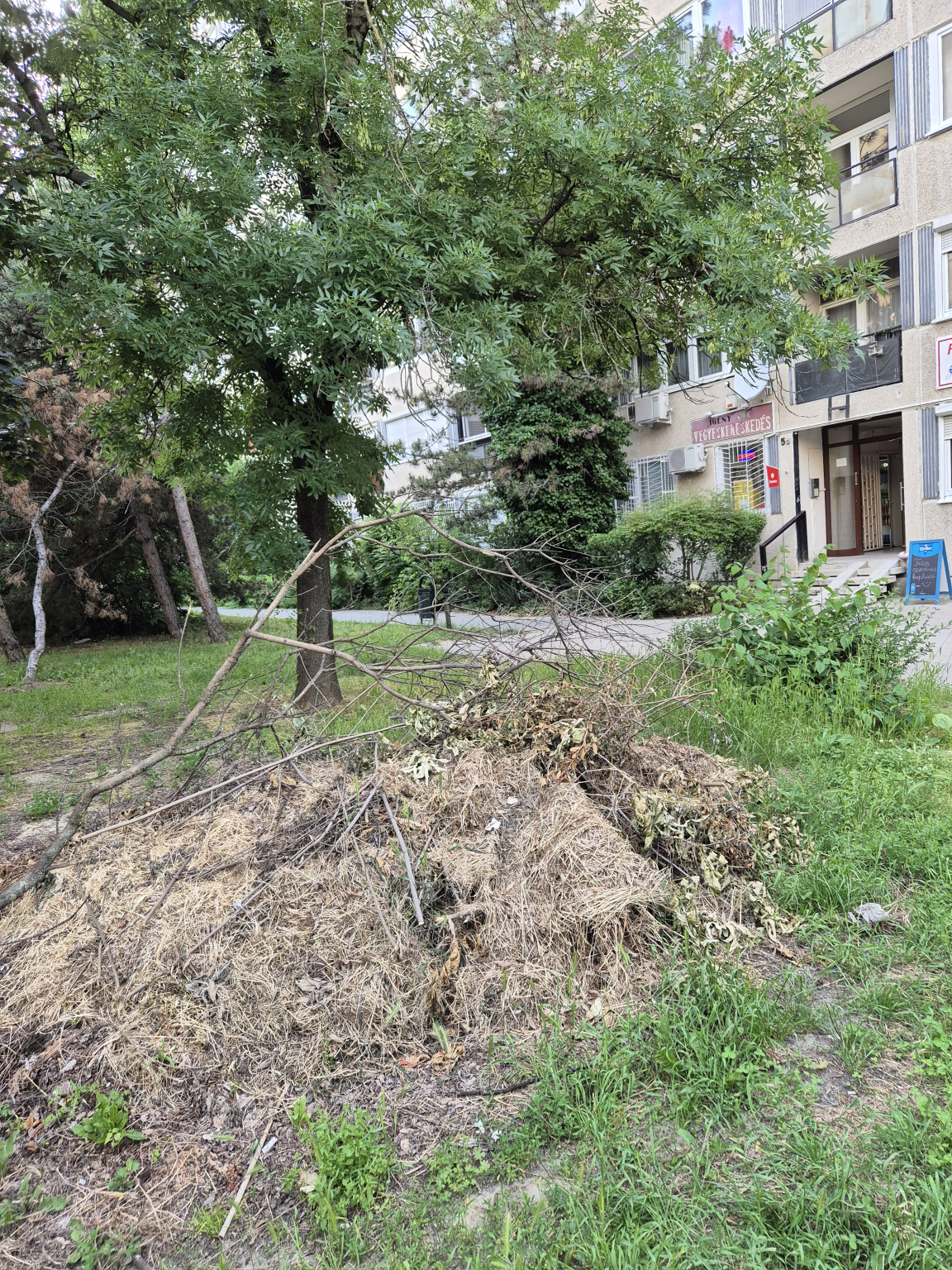 A Füredi utca 5-7-9-11 között nagy nehezen levágott combig érő füvet nem gereblyézték össze, hanem hagyják megrohadni a tavalyi avarral együtt. Elhanyagolt az egész környék, gyerekkel nem lehet kiülni a fűre, a kutyákat a sok kiszáradt toklász fenyegti. A levágott, leszakad gallyakat csak odahordták vmelyik lépcsőház elé. Most pont azelőtt rohad több hete a kupac, amelyikben pár hete tűz ütött ki (Füredi utca 5/D).