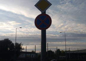 Kérem az illetékest, hogy a képen látható főútvonal táblát legyen szíves újra cserélni!