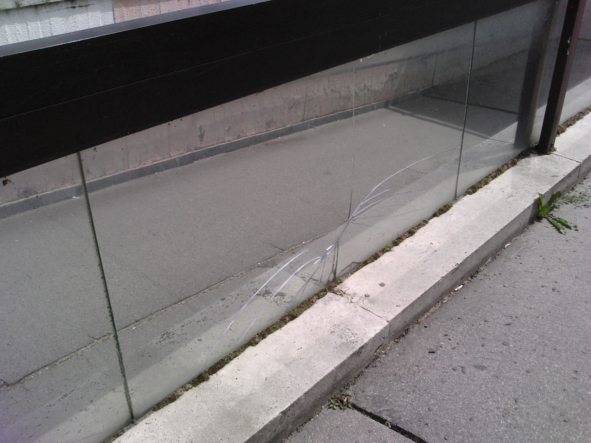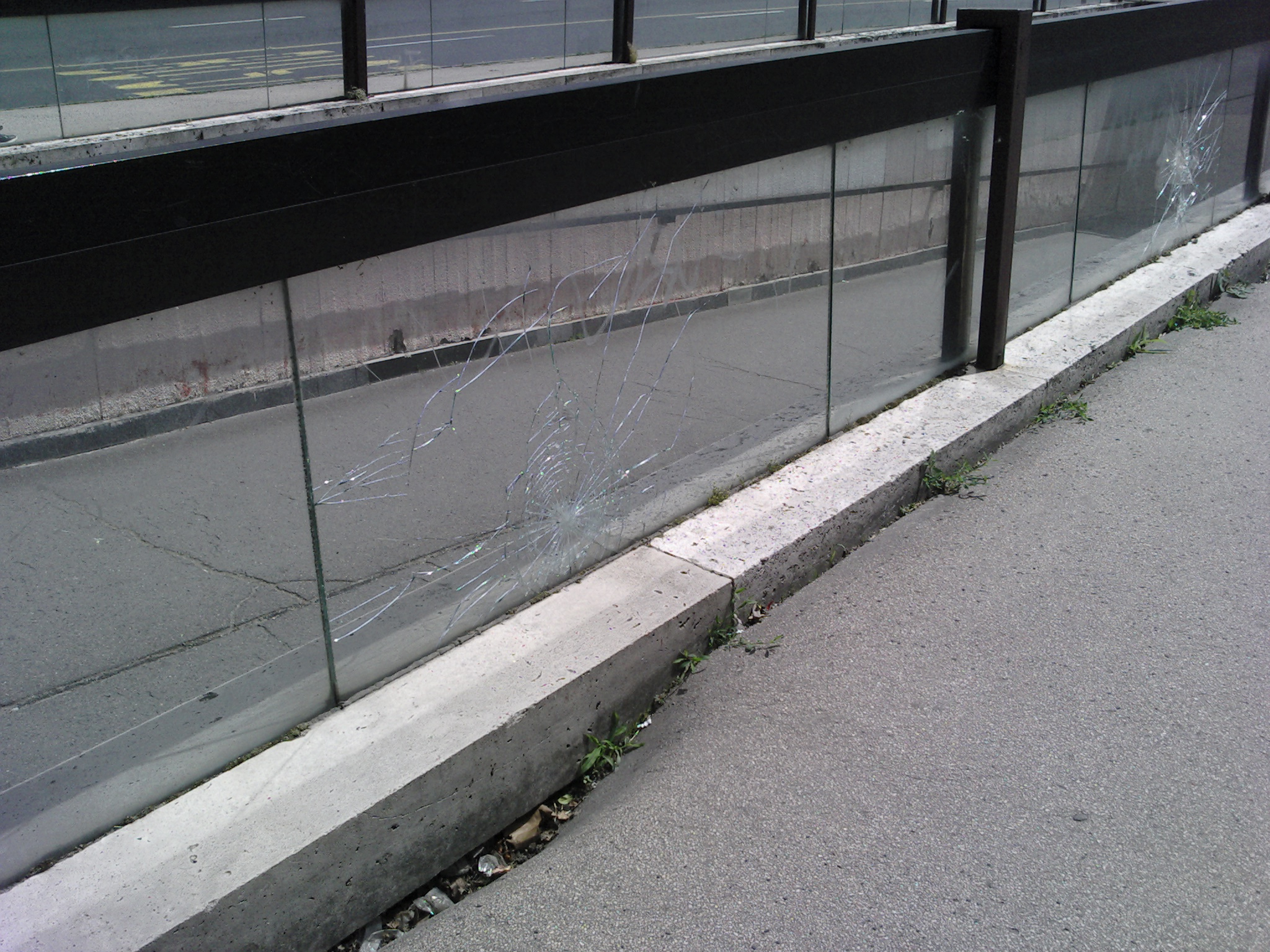 A Budapest III. kerület, Flórián téri aluljáróban a "H" kijárati lépcsőfeljárónál lévő megrepedt üvegkorlátokat kellene kicserélni, lehetőség szerint új, biztonsági üveglapokra.