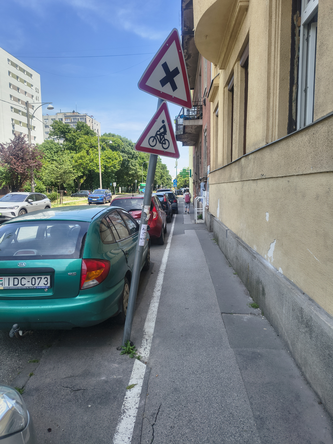 - harmadrészt, amikor parkoló autók kidöntik, elvesz még több helyet az eleve túl szűk járdából