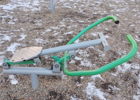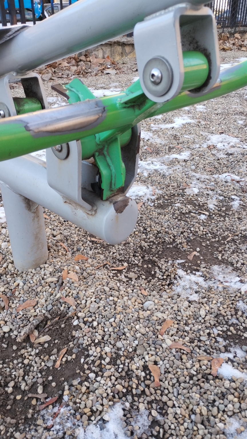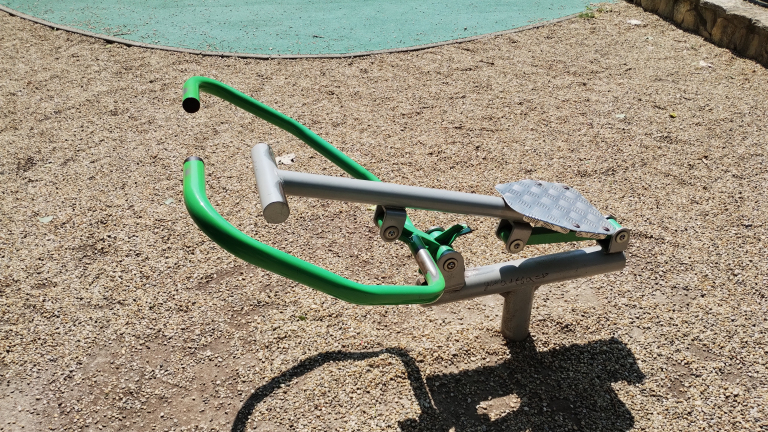 Az Almássy téren található felnőtt fitnesz eszköz megszorult, nem lehet használni.