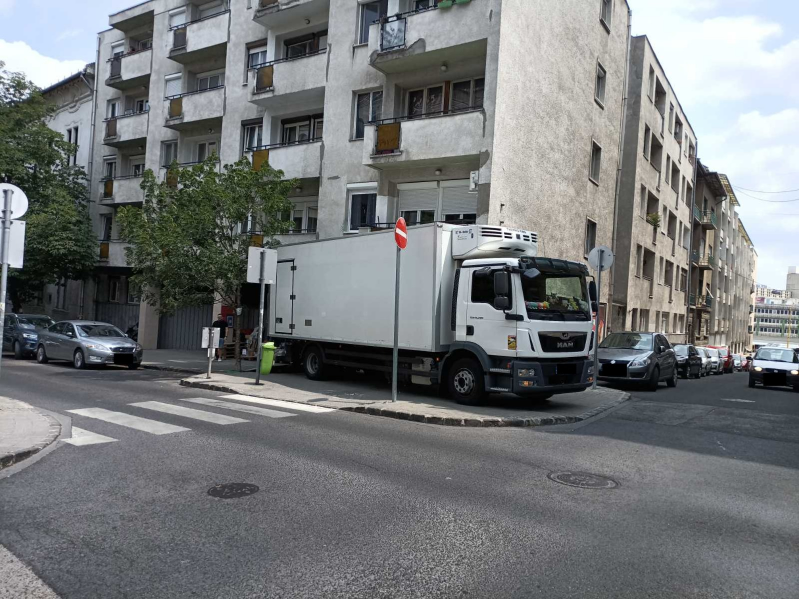 Beteg családtagomat gyakran kell vinnem az Országos Onkológiai Intézetbe (1122 Ráth György u. 7-9) a főbejárat előtti kereszteződésben szinte minden alkalommal minden irányban elállják járművekkel áruszállítás ürügyén vagy csak hanyagságból a sarkokat, ráállva az átkelőhelyekre ill. a lesüllyesztett padkákra. Így nem tudunk átkelni szabályosan kerekesszékkel, vagy ha sikerül átemelnem a magas padkán, az úttesten az autóforgalommal párhuzamosan kell tolnom a kocsit, ami rendkívül balesetveszélyes. Legutóbb már fotókat is készítettem, mert több, mint tíz percig nem tudtunk elindulni hazafelé a tűző napon. Sajnos ez sok éve fennálló probléma, olykor több kerekesszekes beteg is összetorlódik, remélve, hogy egyszer majd átkelhet.